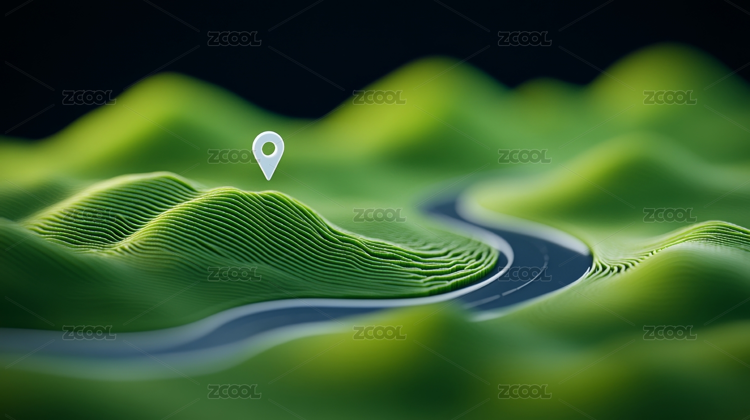 地图定位绿色山峦公路