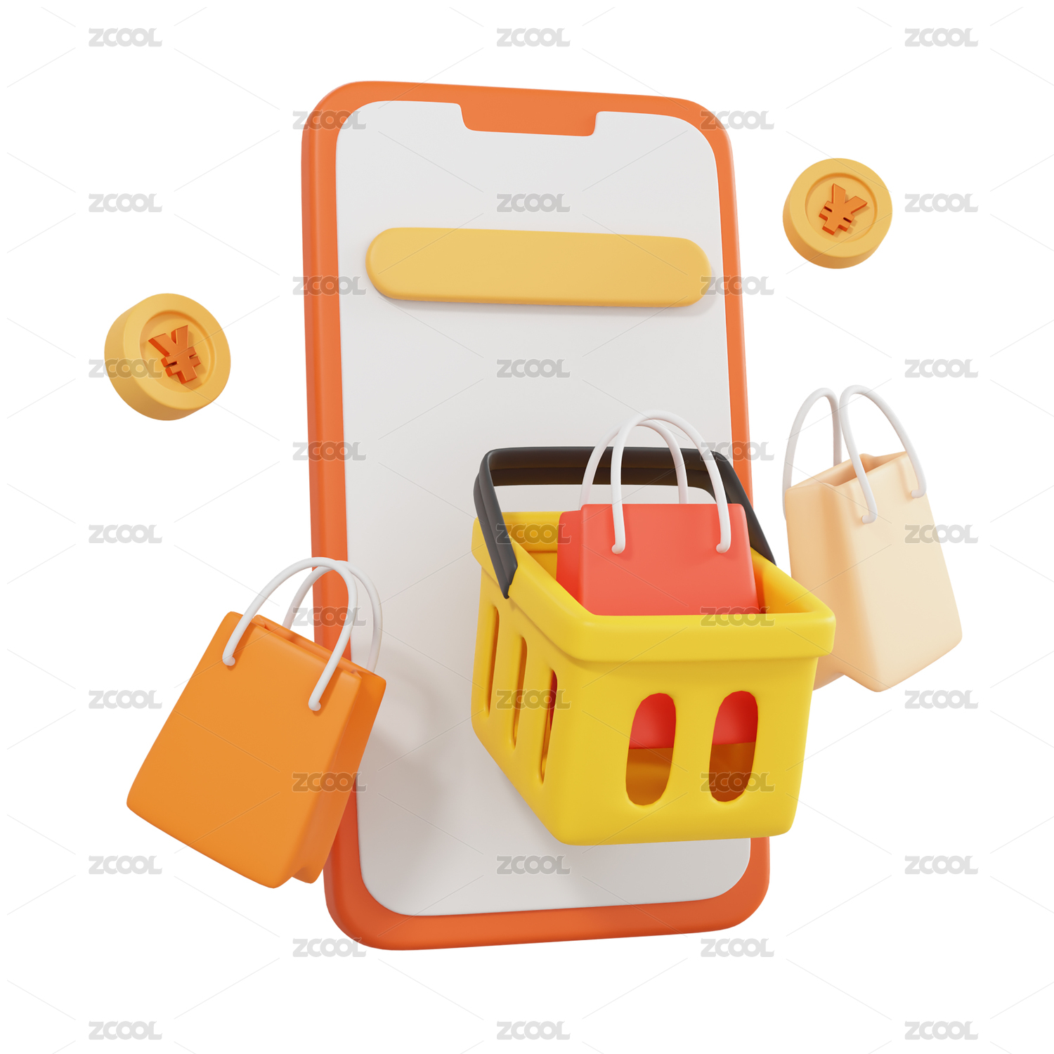 3d手机与购物袋的3D场景