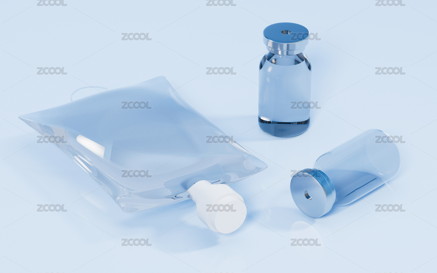 输液袋与安瓿瓶医药概念3D渲染