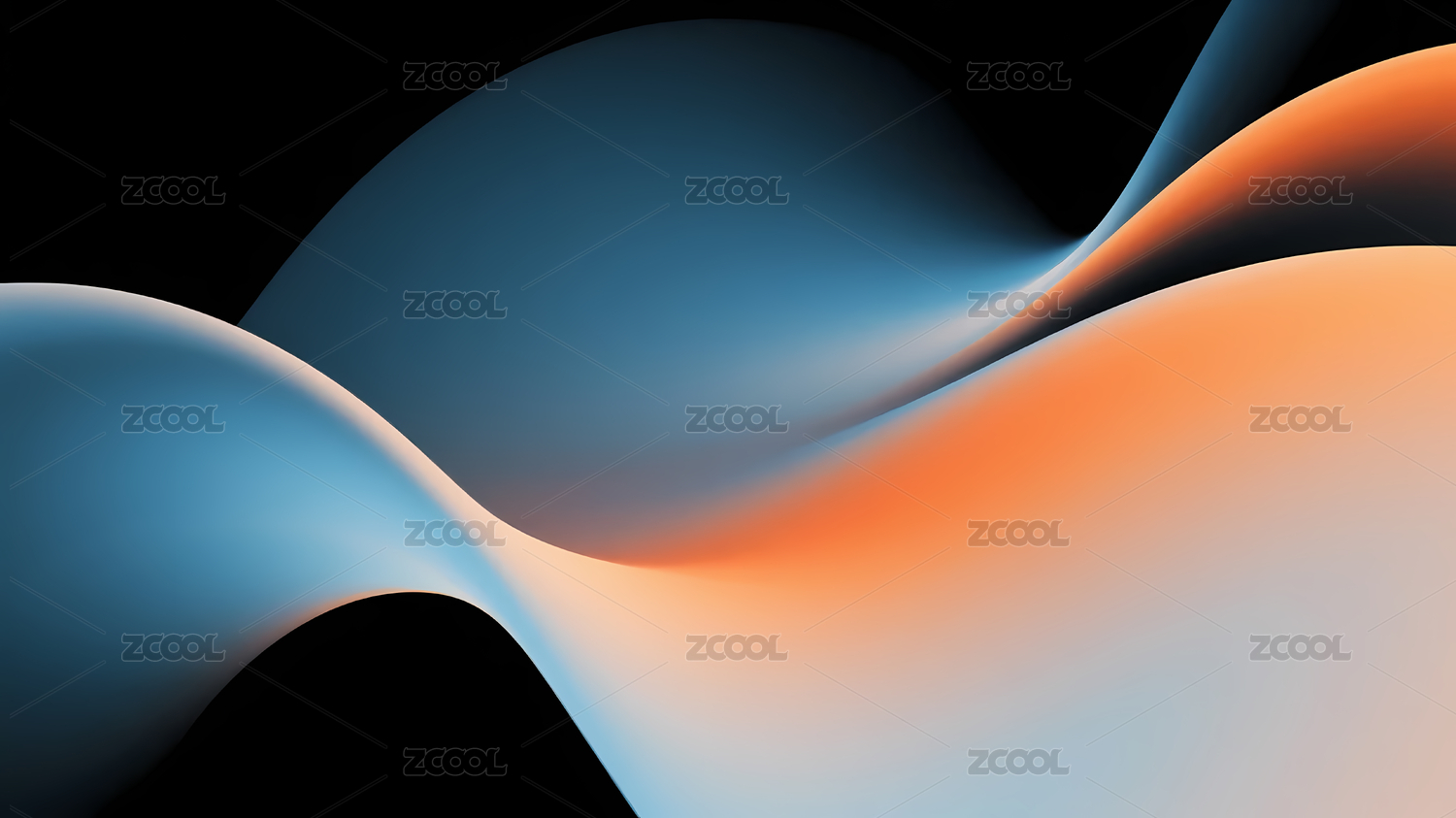 蓝色,波浪,曲线,弯曲,镜面,金属,橙色,渐变,质感,后期