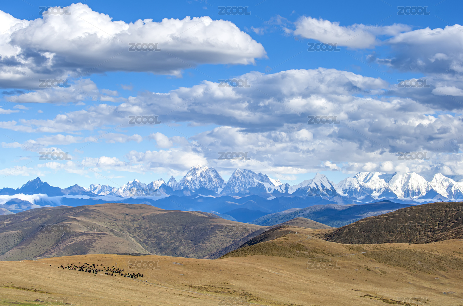 四川西部甘孜新都桥镇鱼子西景区远望雪山