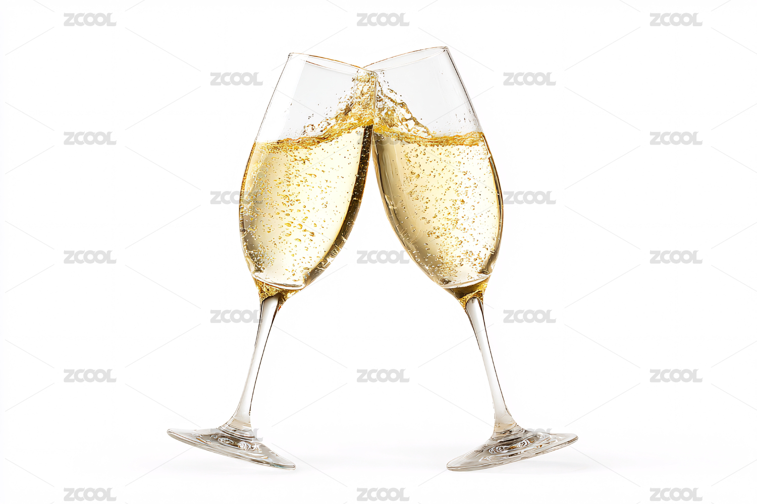 香槟和一个空香槟酒杯白色背景上的玻璃