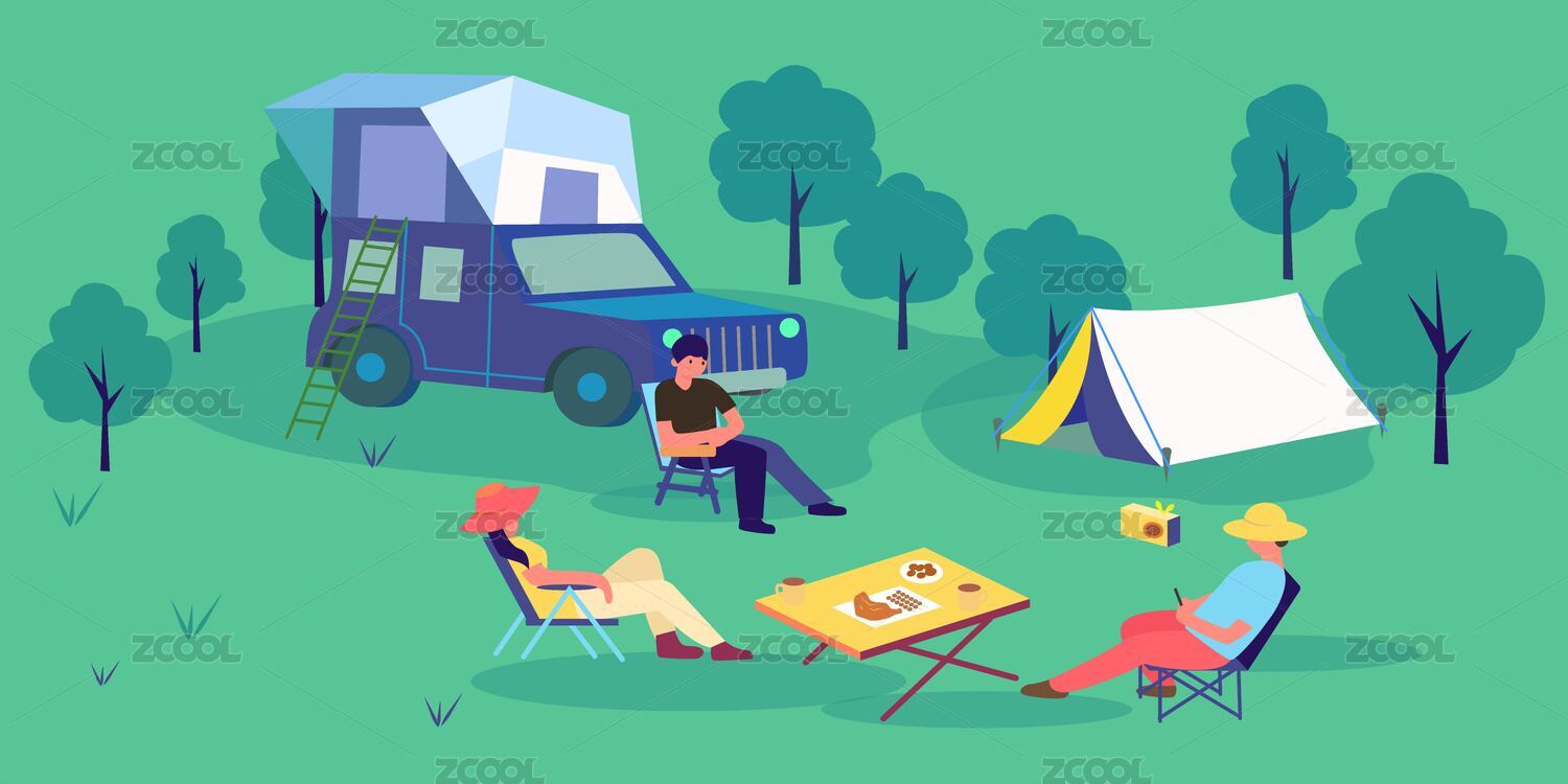 人物,插画,露营,户外,背包,旅行,度假,描线,青年,生活