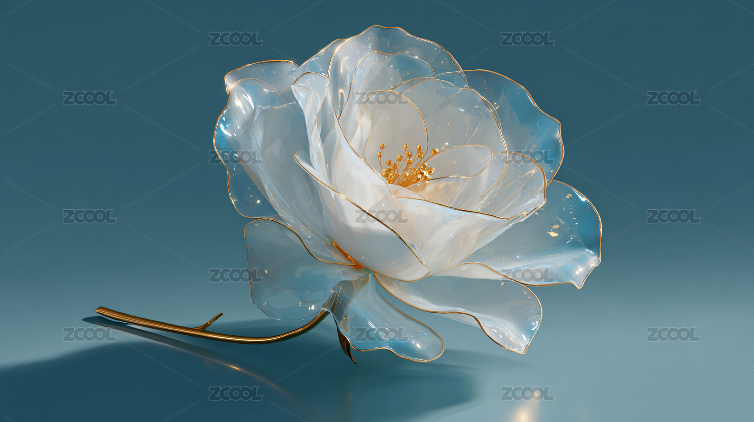 蓝色透明玻璃质感玫瑰