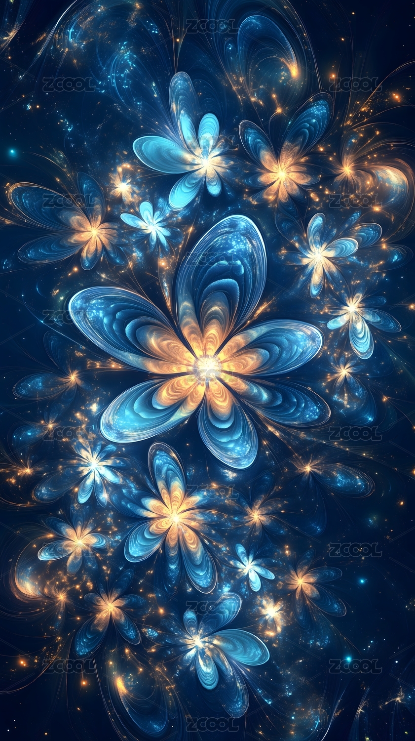 蓝色调梦幻花卉