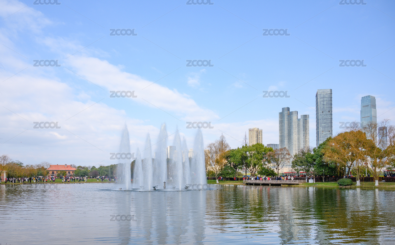 湖南长沙橘子洲湖面与喷泉景观