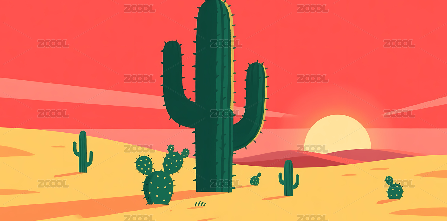 一株仙人掌矗立在广袤沙漠的沙丘间