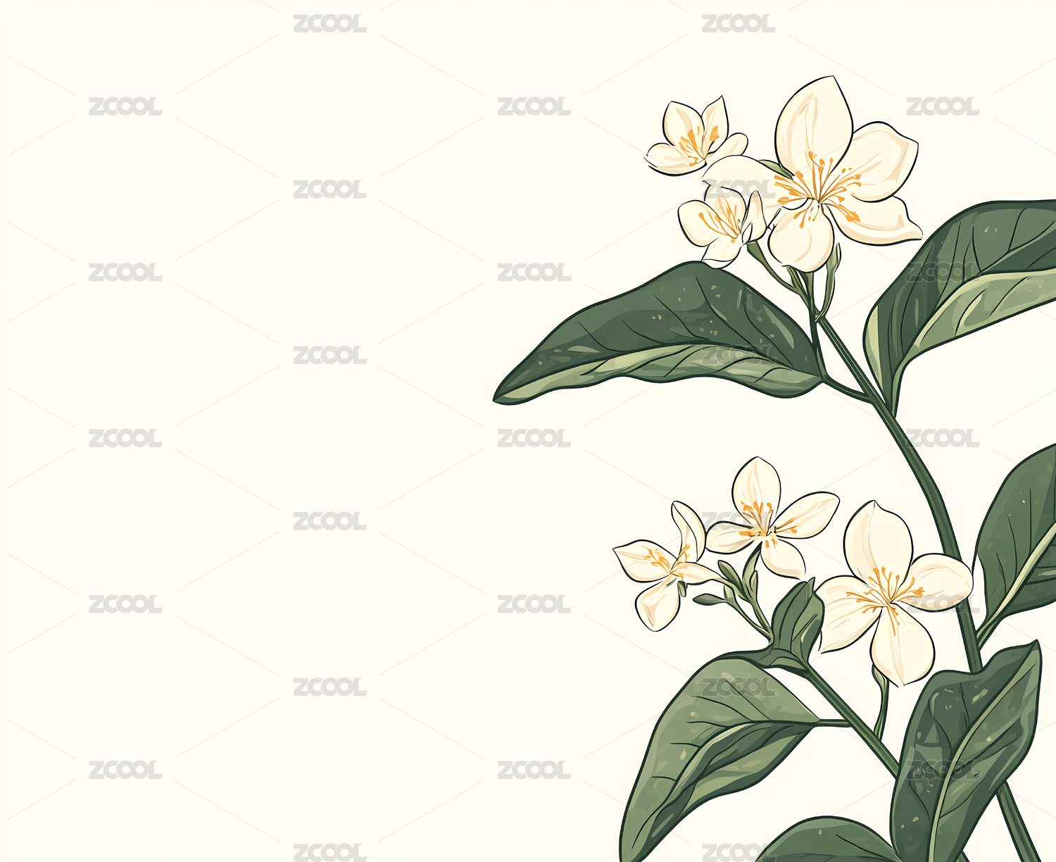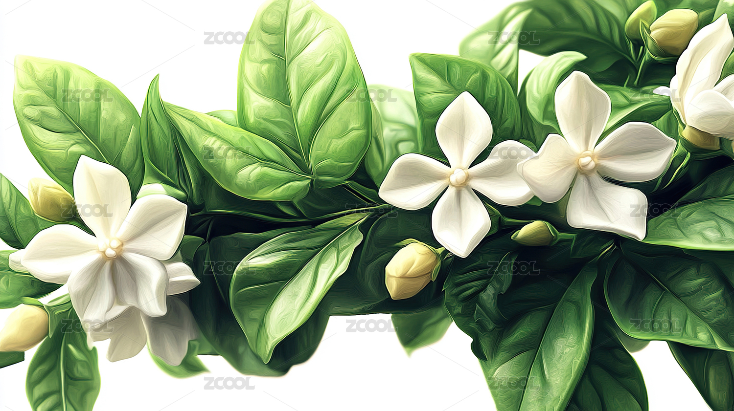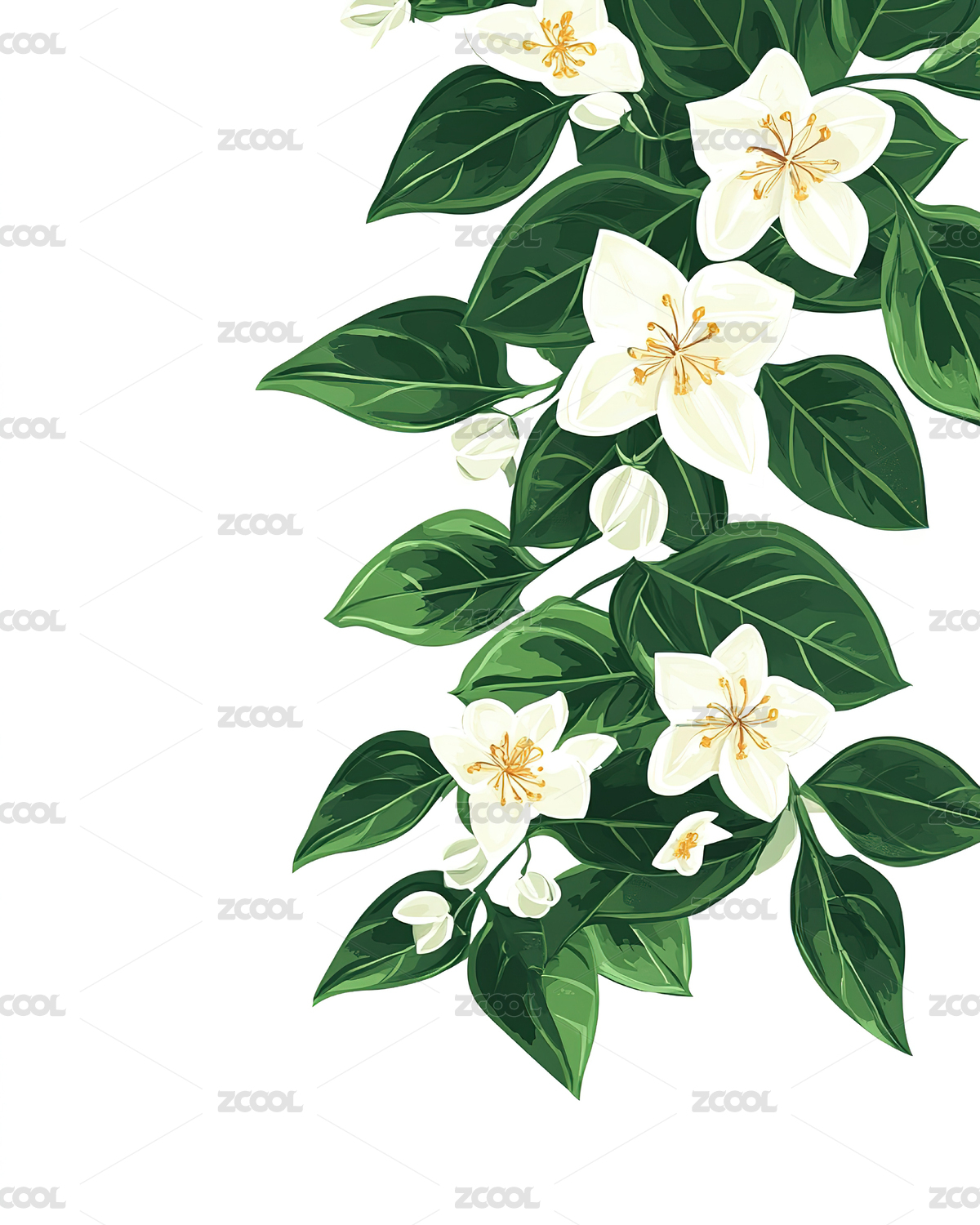 素雅茉莉清新植物插画