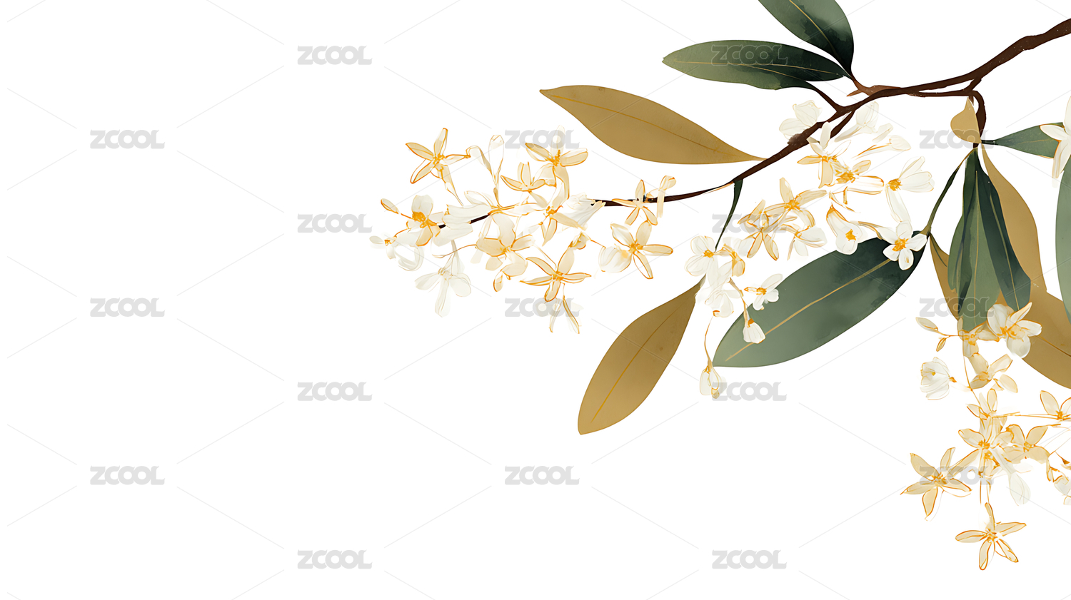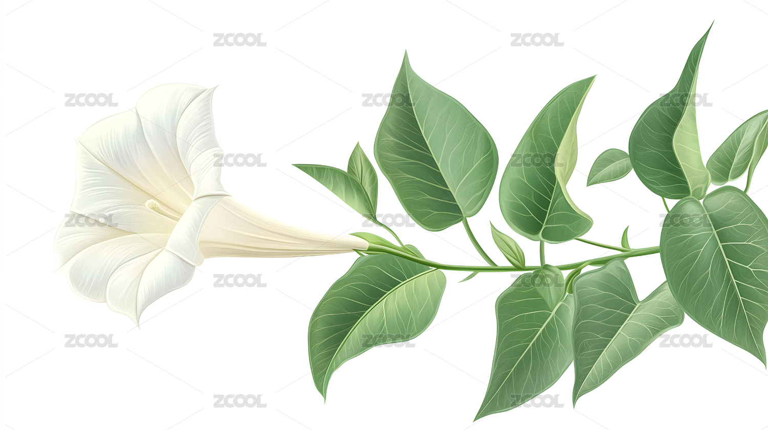 白色花朵与绿叶的美丽插画