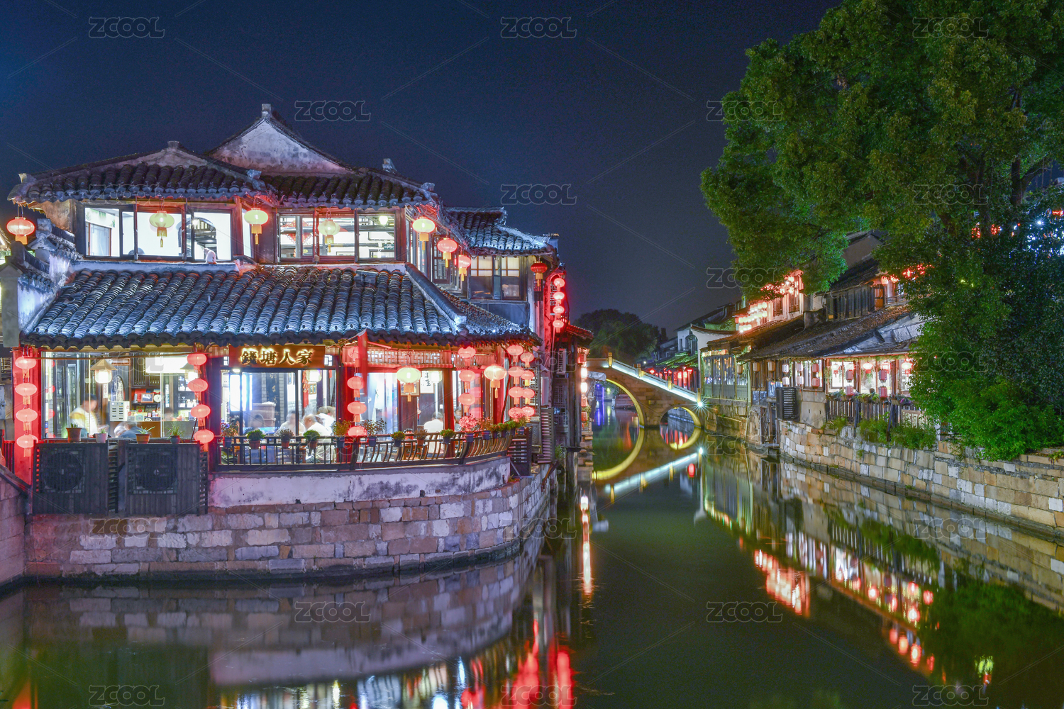 浙江省嘉兴市桐乡乌镇风景区夜景