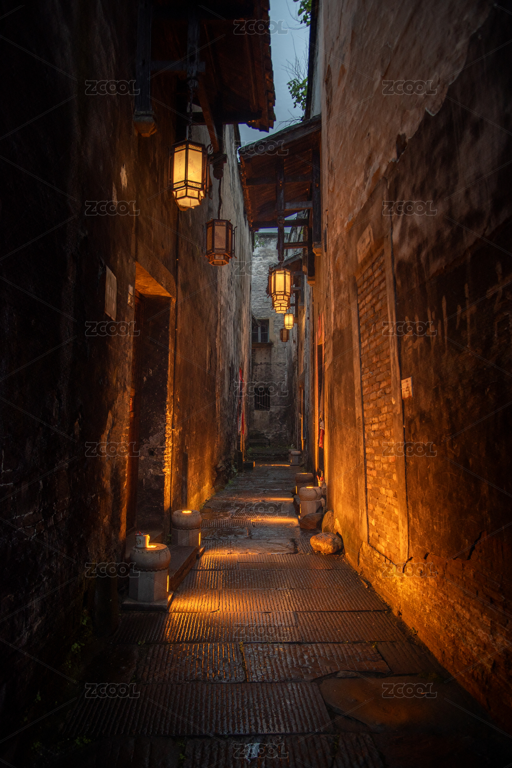 安徽黄山宏村徽派古典建筑的青石板路巷子