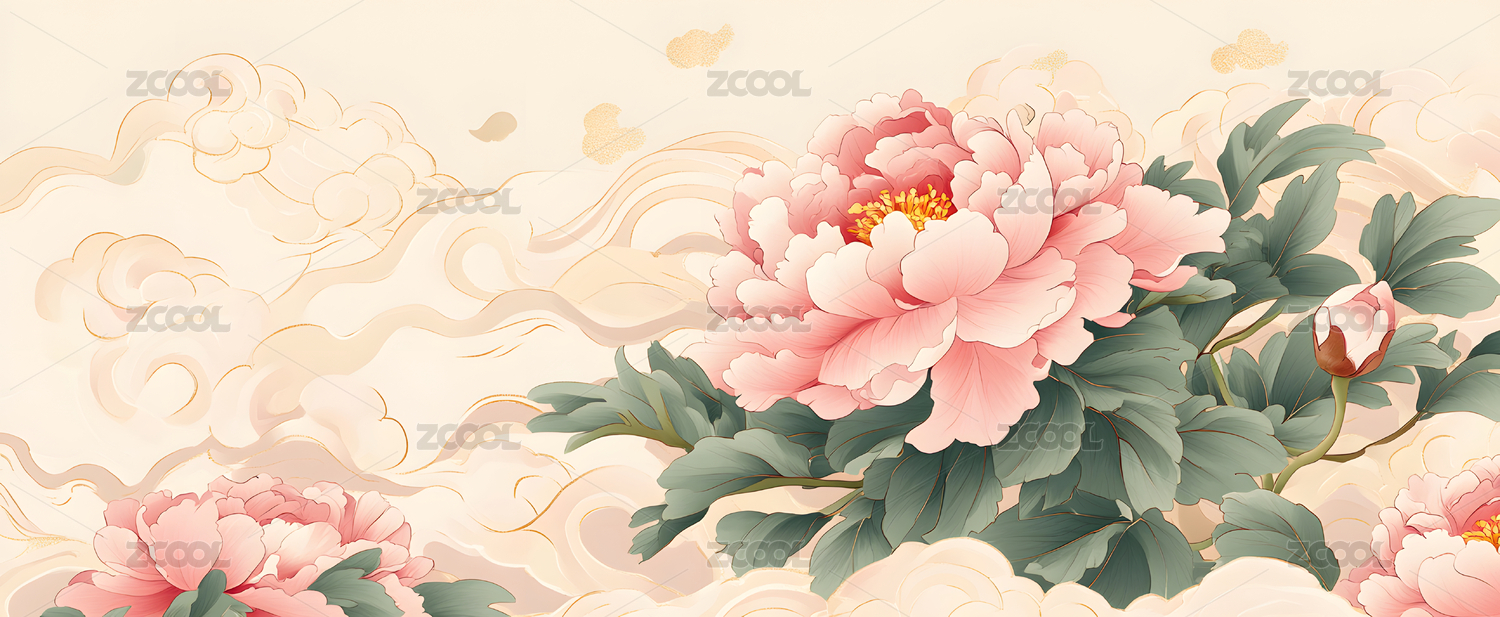 牡丹,花卉,花朵,红色,白色,蓝色,花瓣,花蕊,中国画,绘画