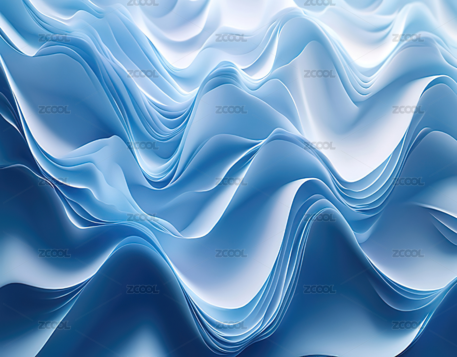 数码蓝白色渐变层叠波浪抽象图形海报背景