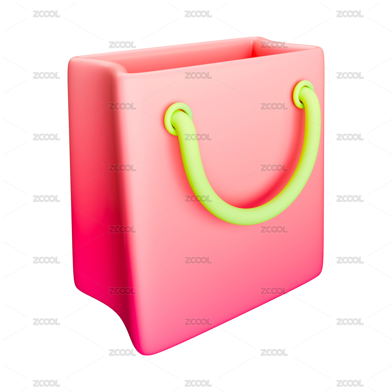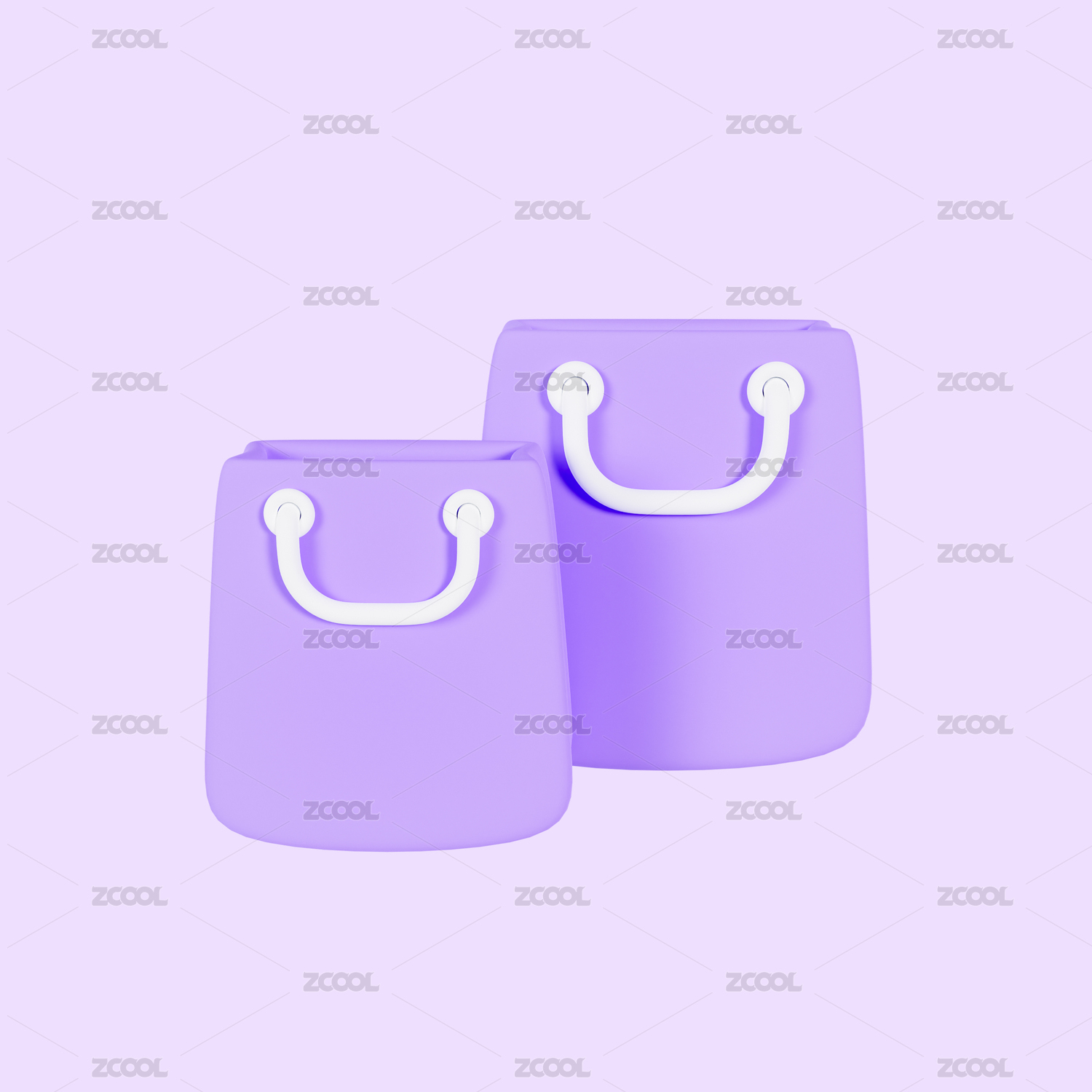 卡通可爱购物袋礼品袋手提袋模型图标插图