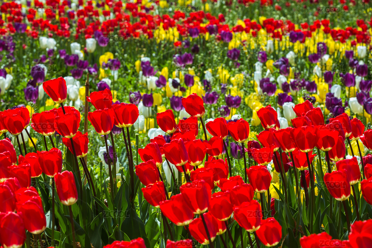 春天里的郁金香花海灿烂盛开五颜六色植物美