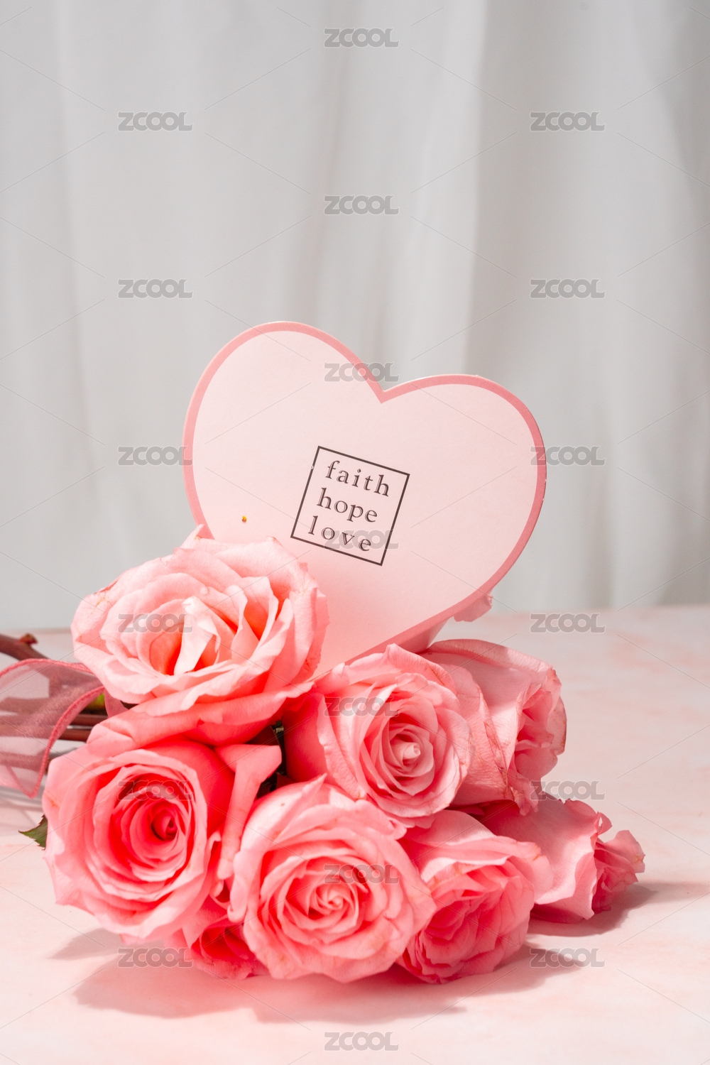 信封与粉玫瑰/浪漫情人节静物背景素材