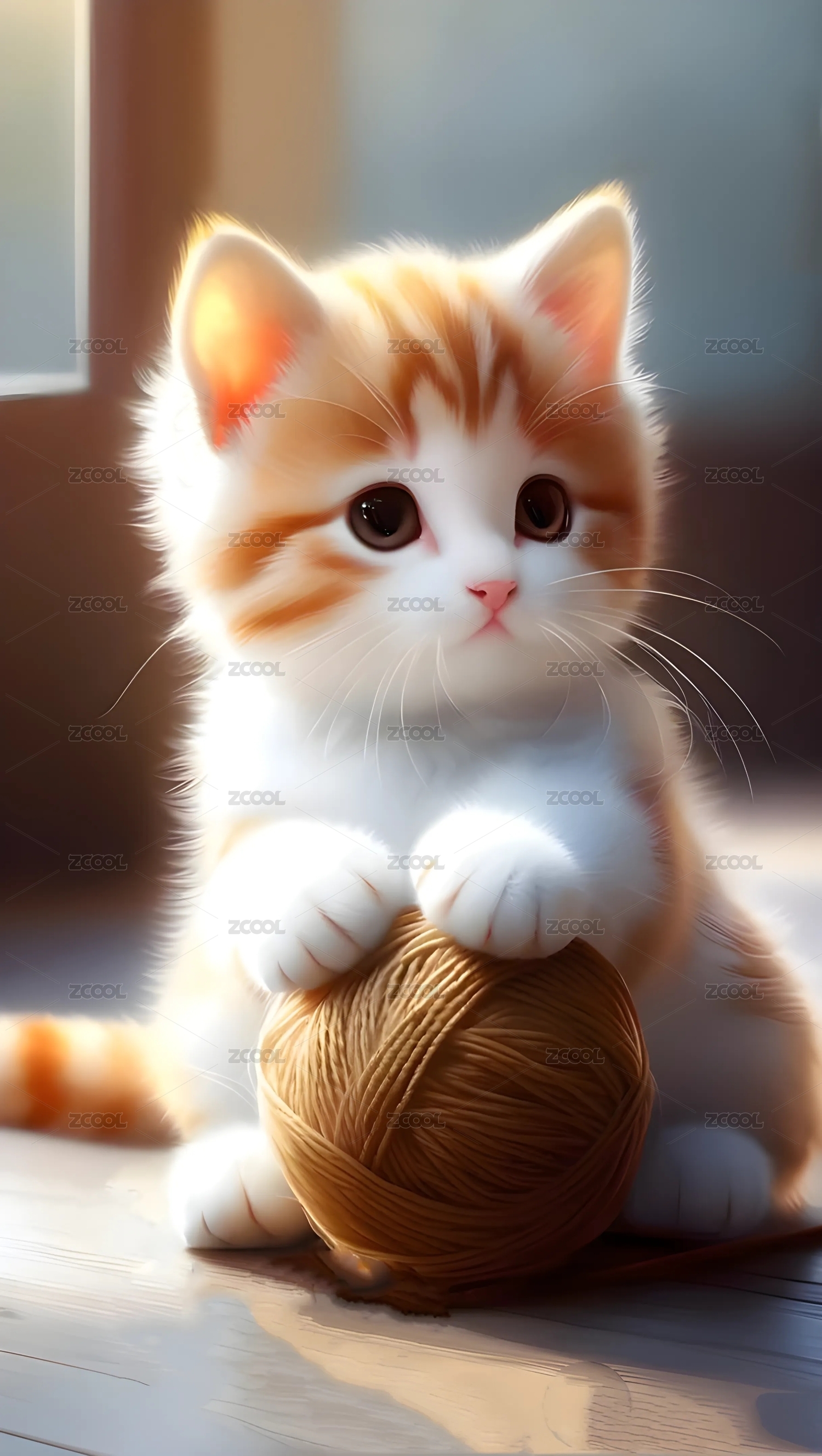猫咪玩绒线球
