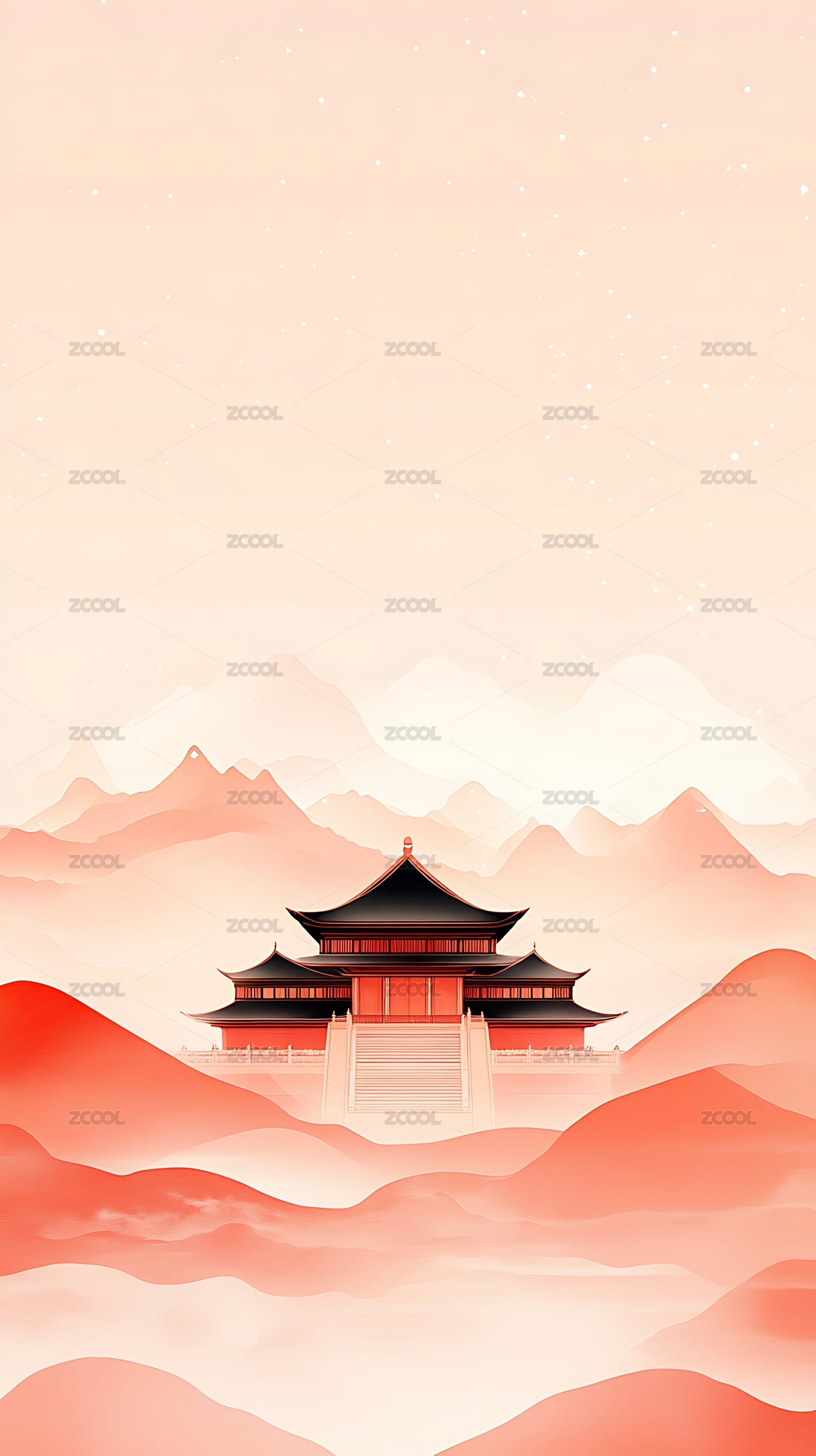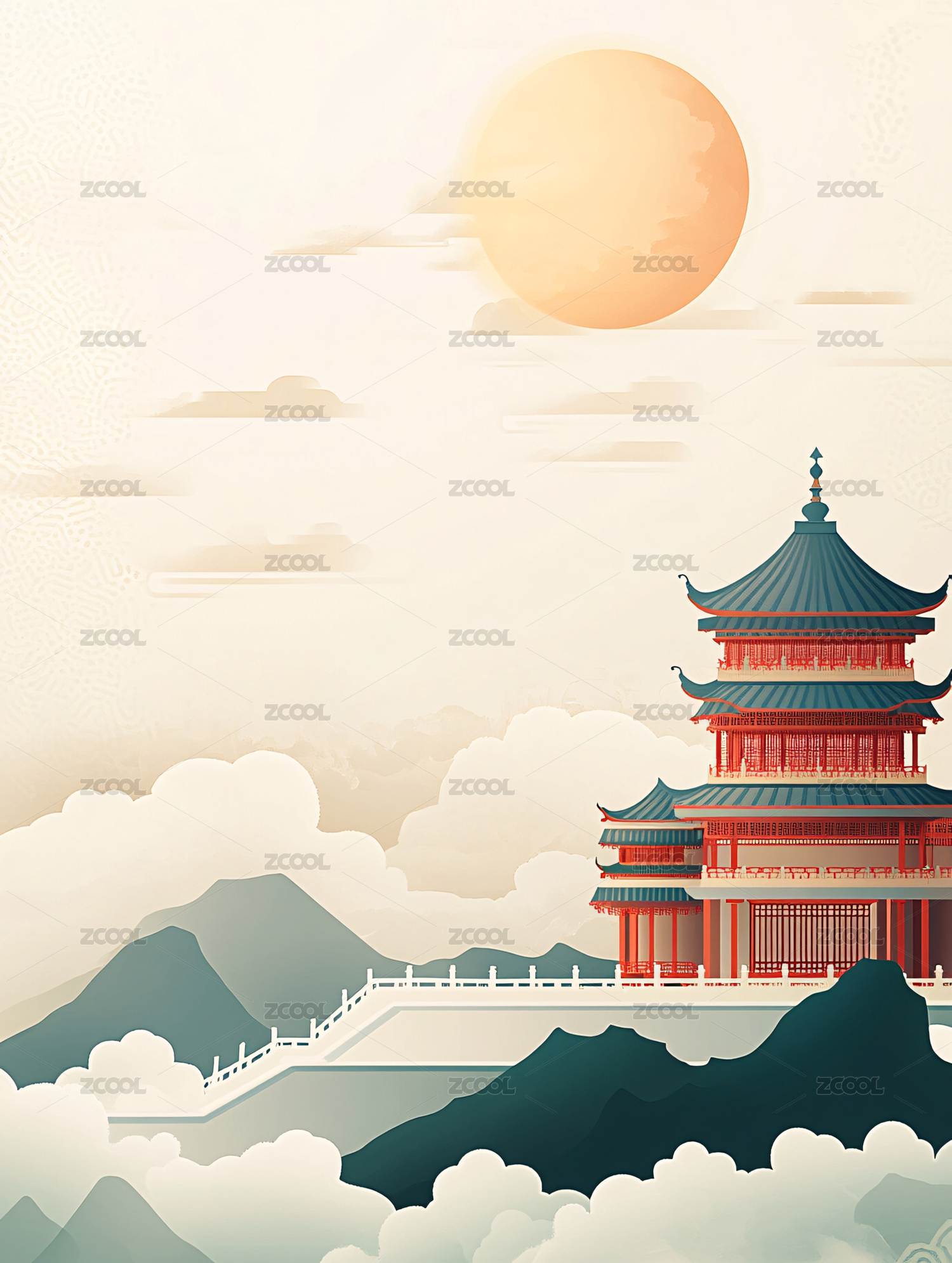 中国风古楼建筑传统国风古建筑国潮插画背景