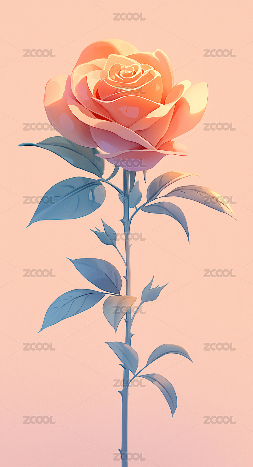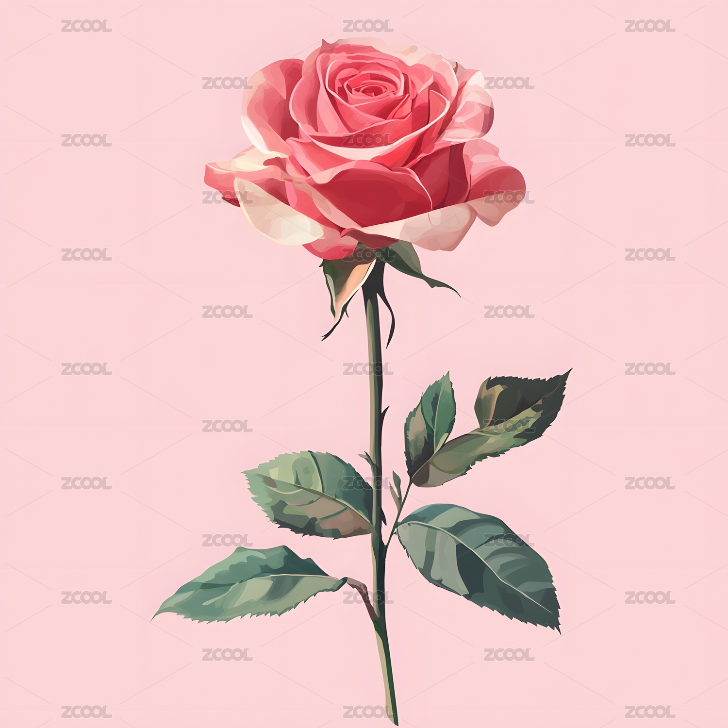 情人节节日唯美小清新玫瑰花鲜花花朵插画