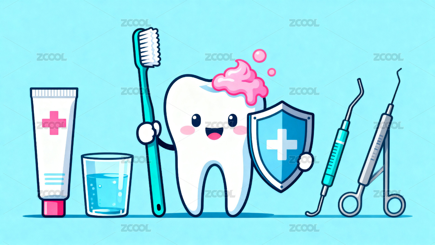 卡通牙齿与口腔护理工具展示