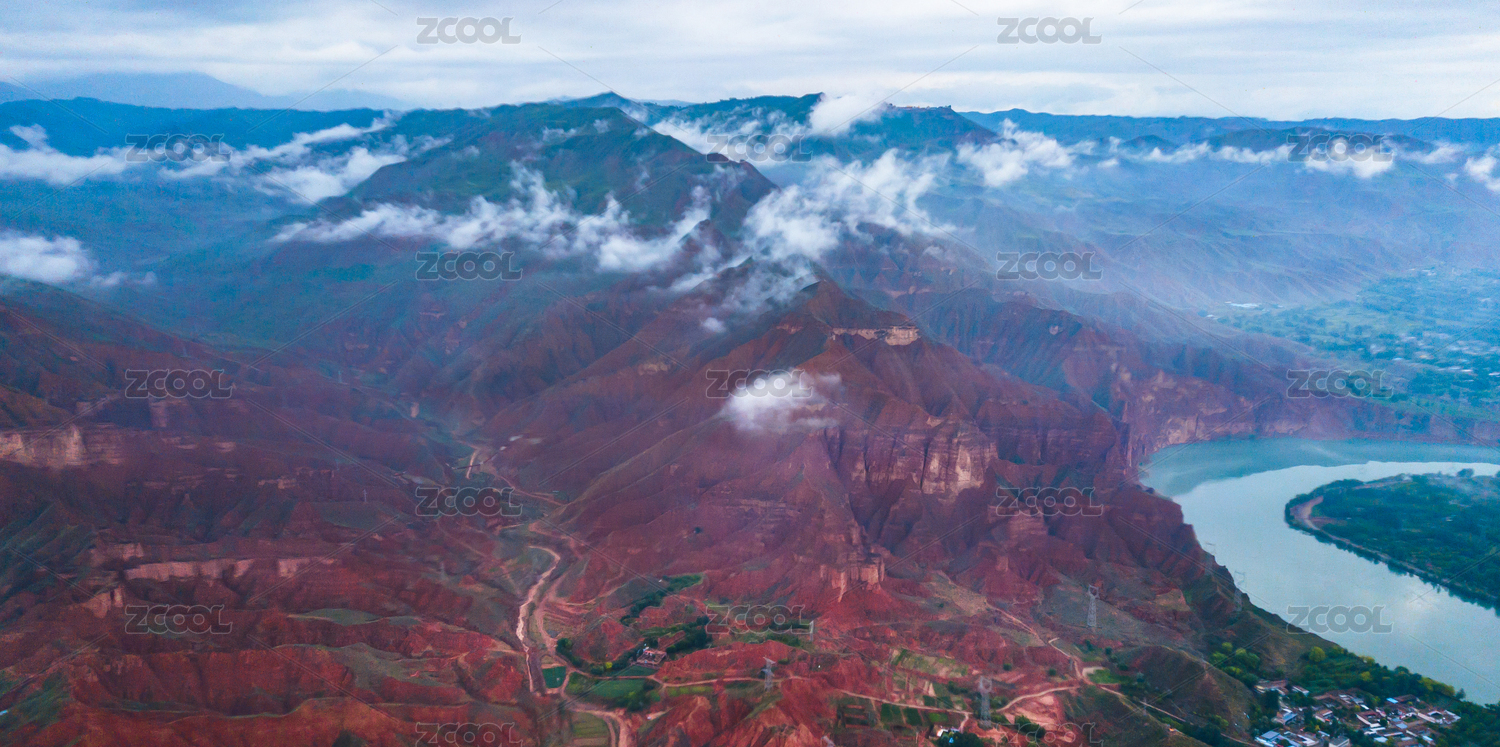 秋天早晨空中俯拍云南大理的山川与贺龙