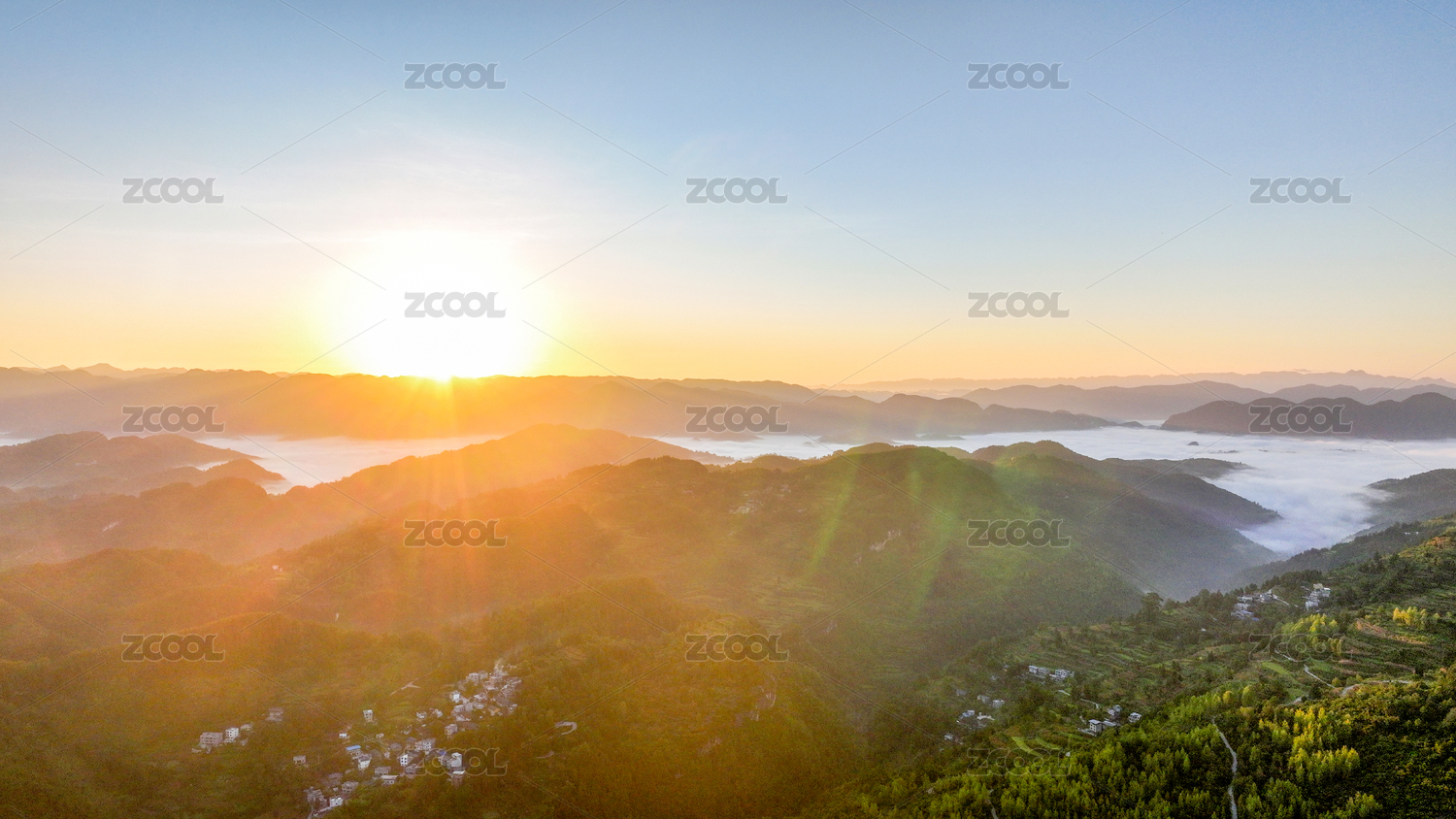 重庆酉阳秋晨日出乡村缥缈如画
