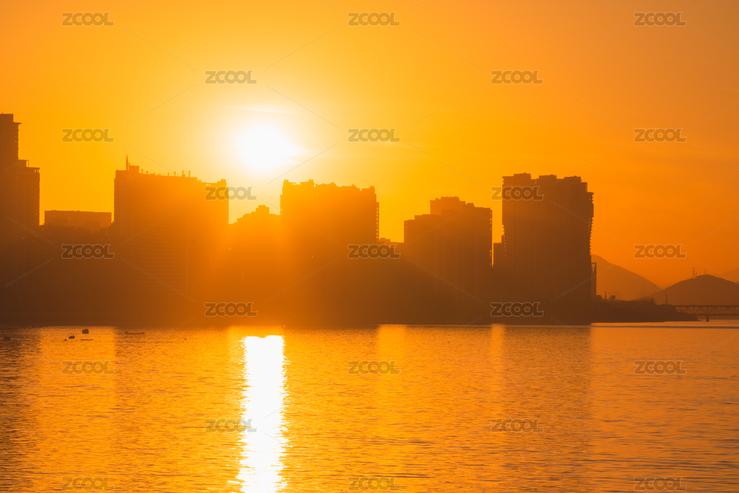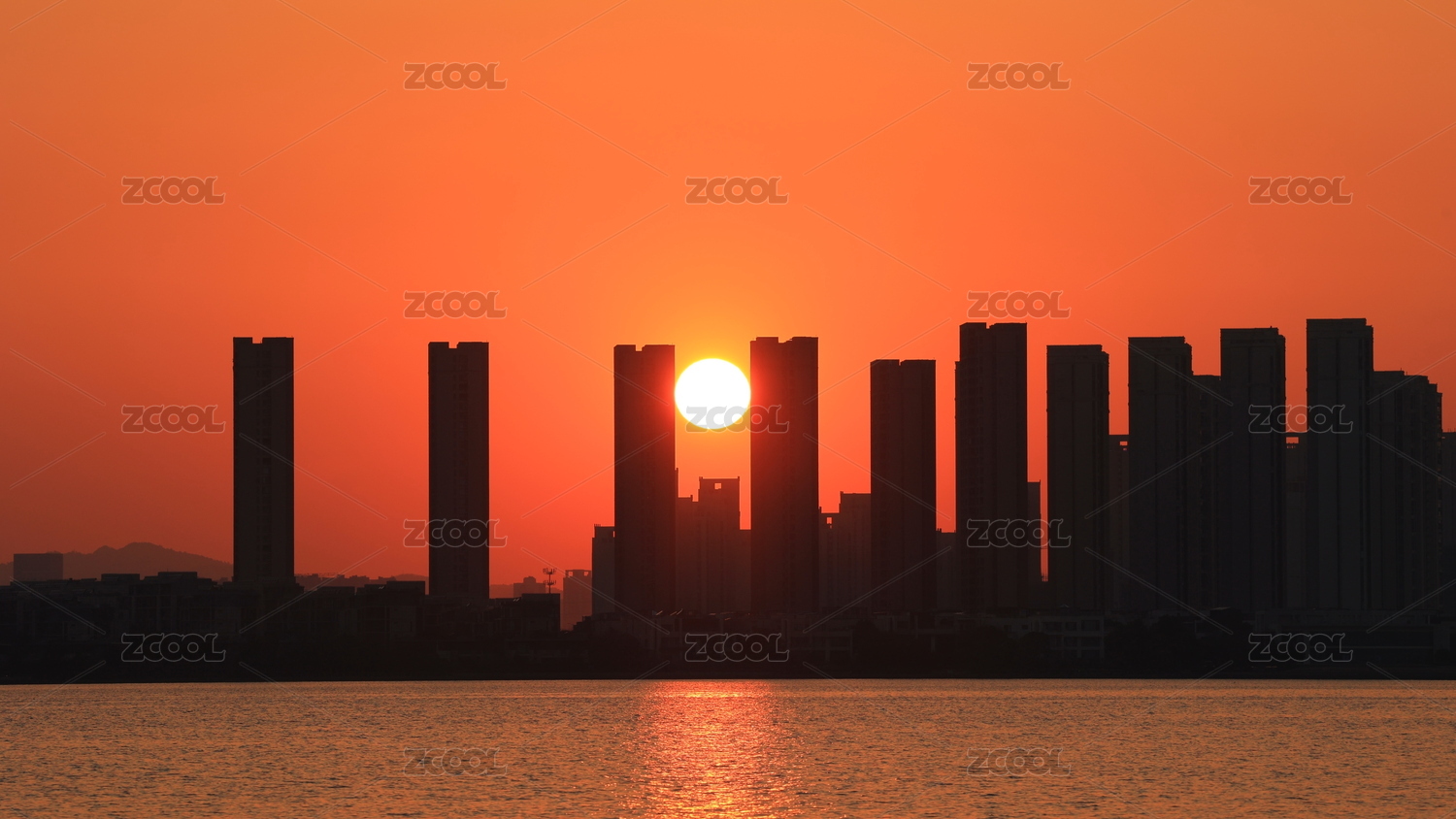 城市夕阳建筑剪影