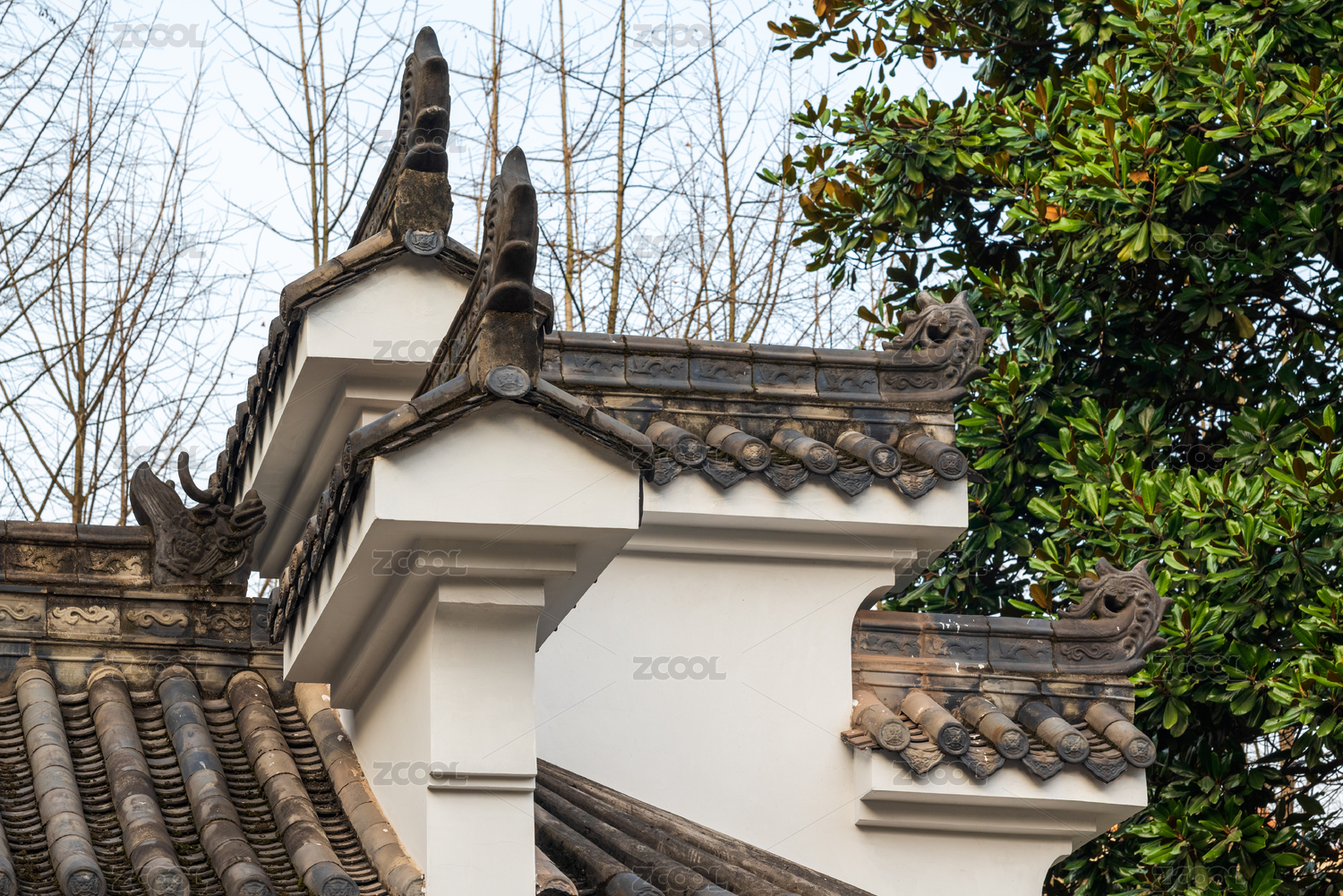 中国浙江省杭州市飞来峰永福禅寺的飞檐斗拱
