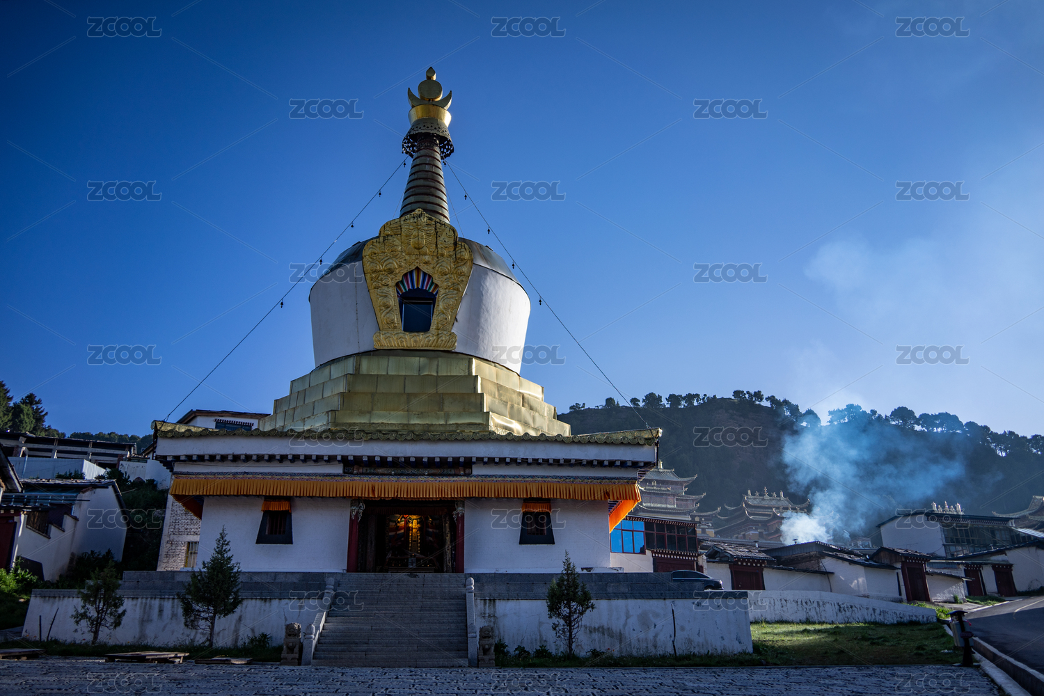 四川省阿坝州郎木寺-蓝天白云下的寺庙建筑