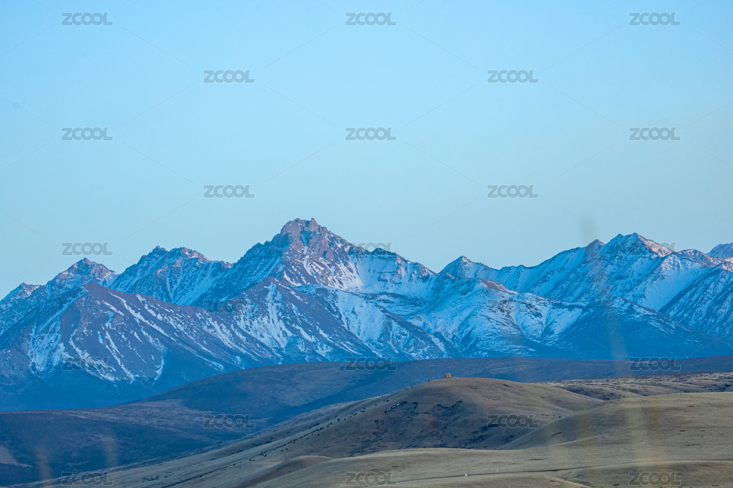 甘肃省张掖市山丹军马场-祁连山脉雪山与牧