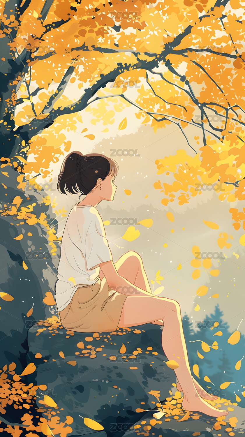 秋天,室外,山,树木,落叶,草地,野花,女孩,自行车,帽子