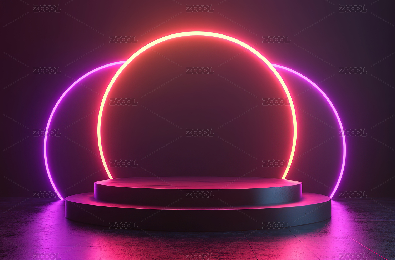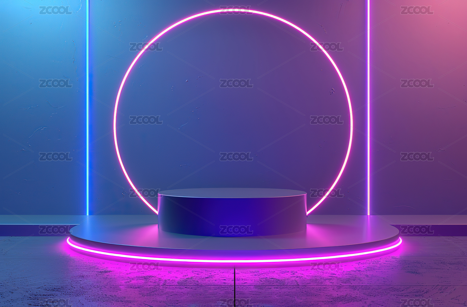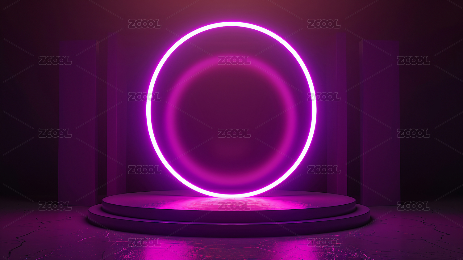 紫色圆形发光3D电商产品展台