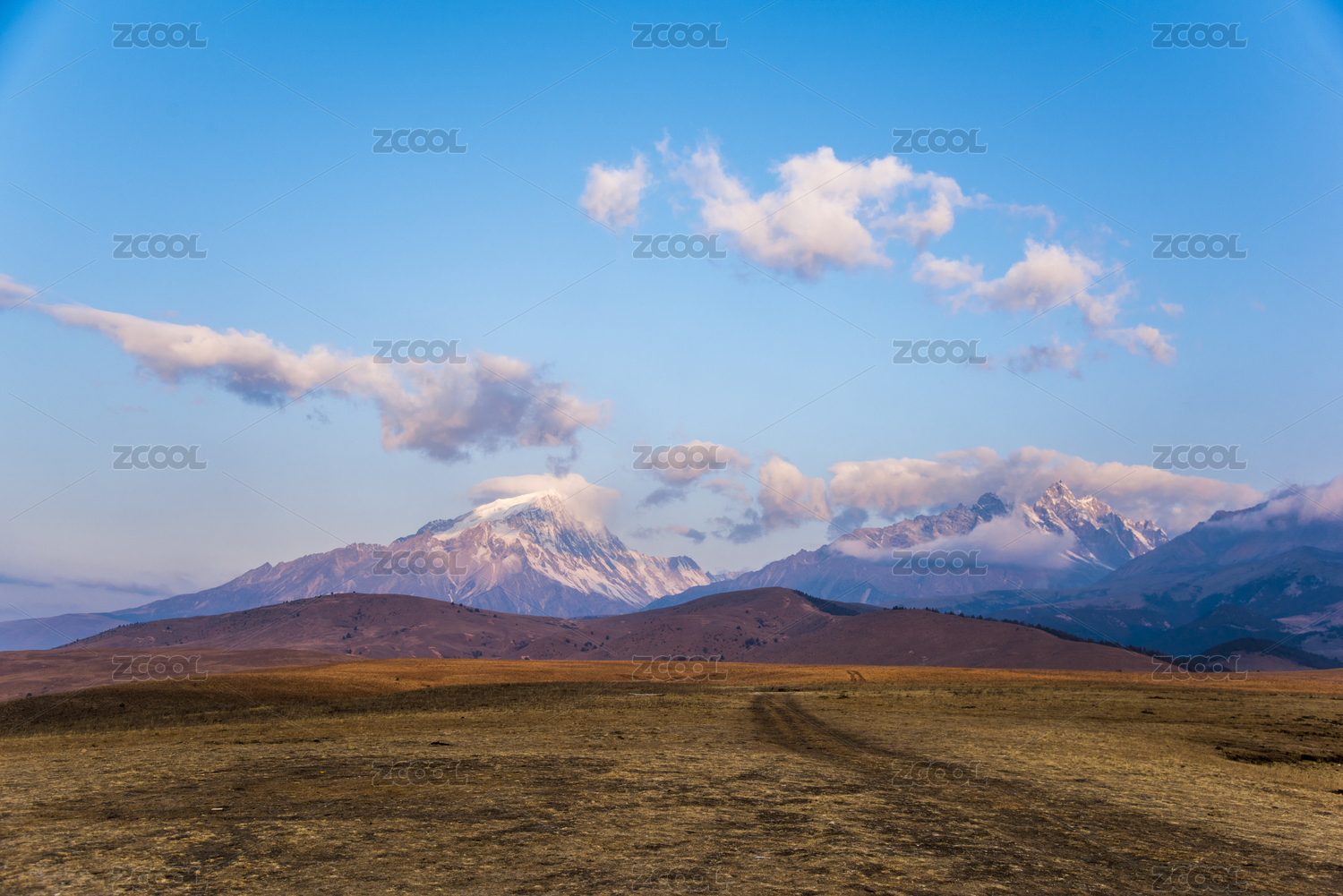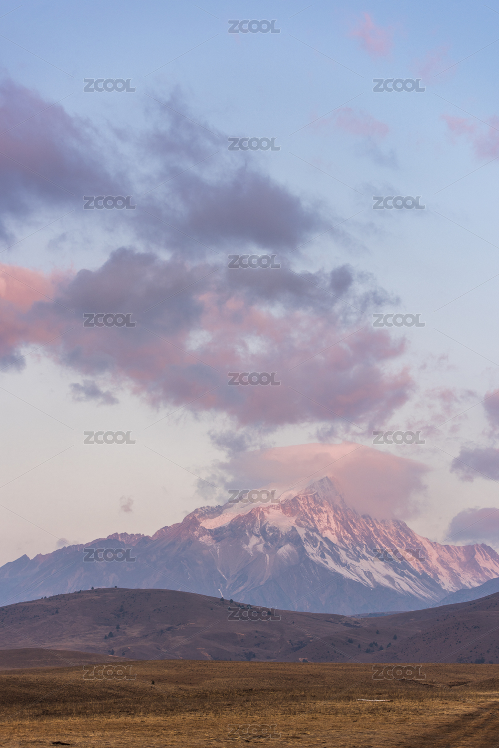 中国,四川,甘孜州,格聂神山,格聂之眼,雪山,清晨,草原,高原,云层