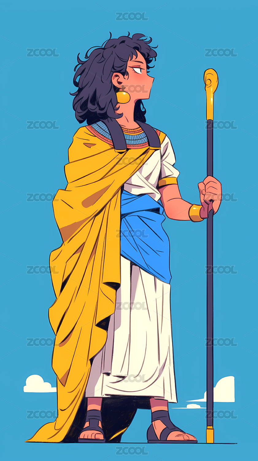 卡通矢量简约扁平化年轻王子手持宝剑形象