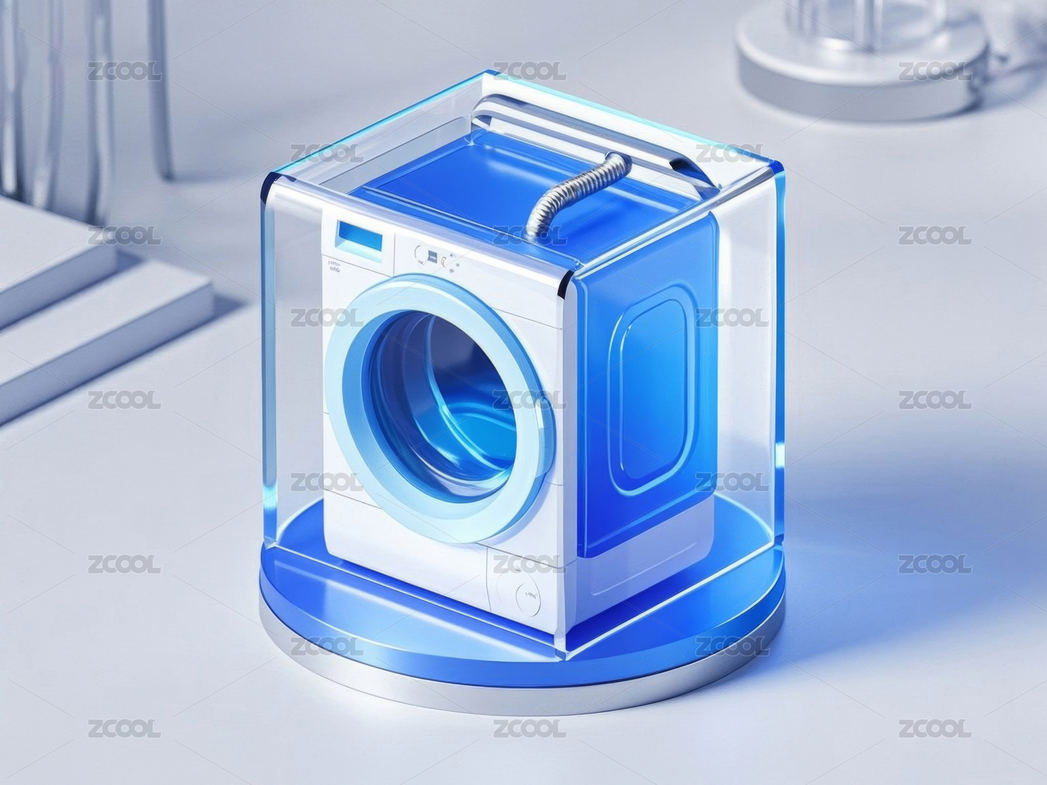 蓝色背景下的现代洗衣机