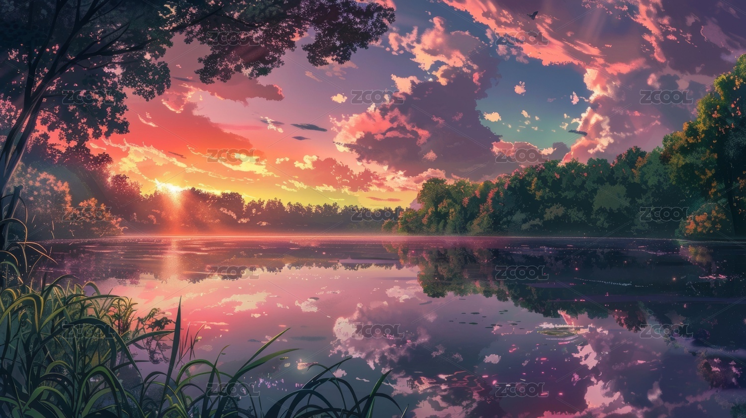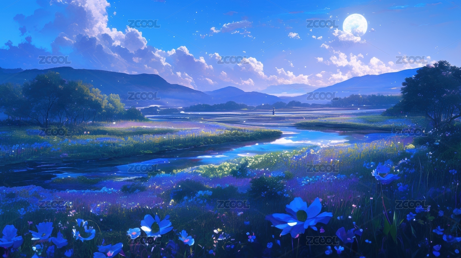 唯美夏季夜晚星光闪耀的治愈插画壁纸