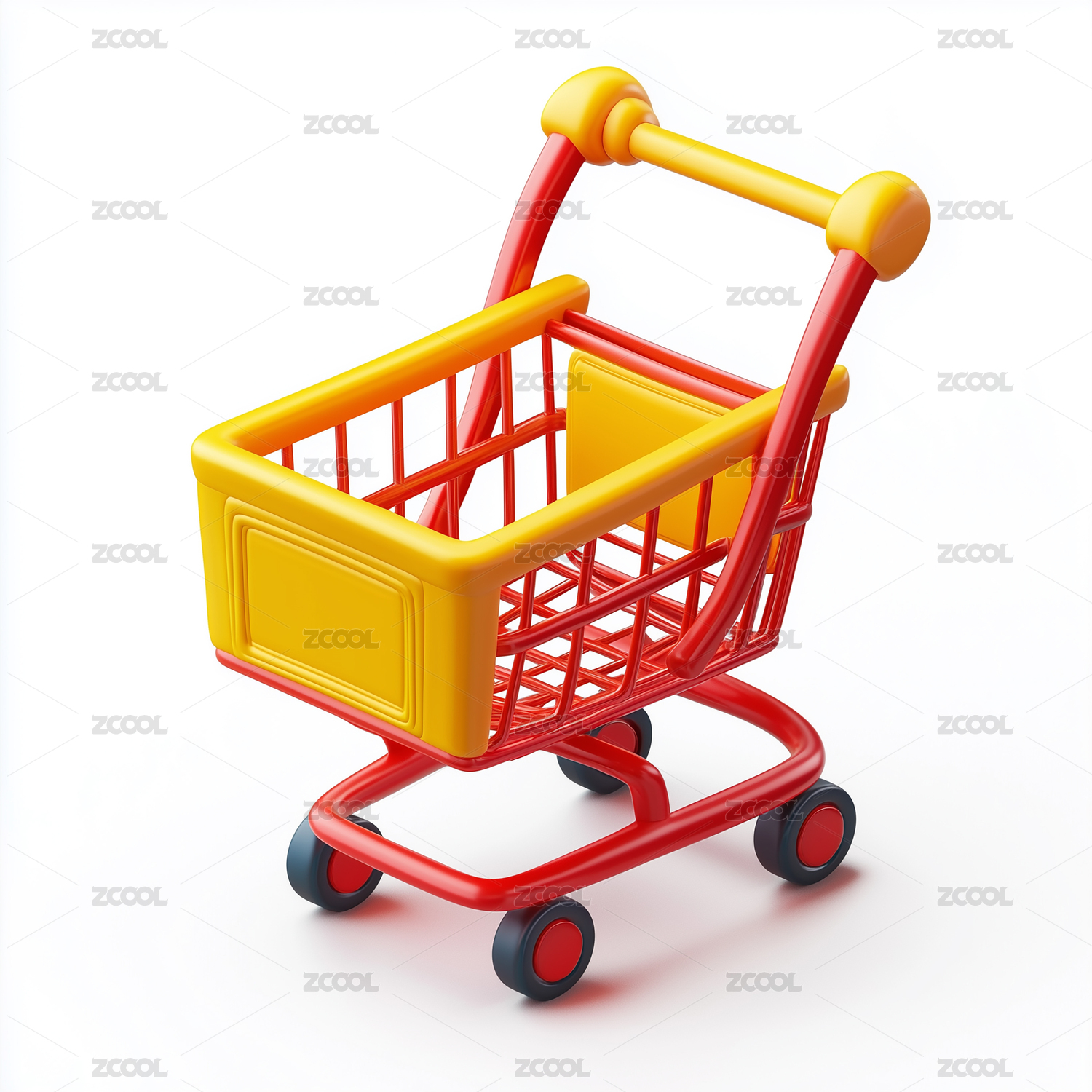 卡通3D购物车白色背景元素