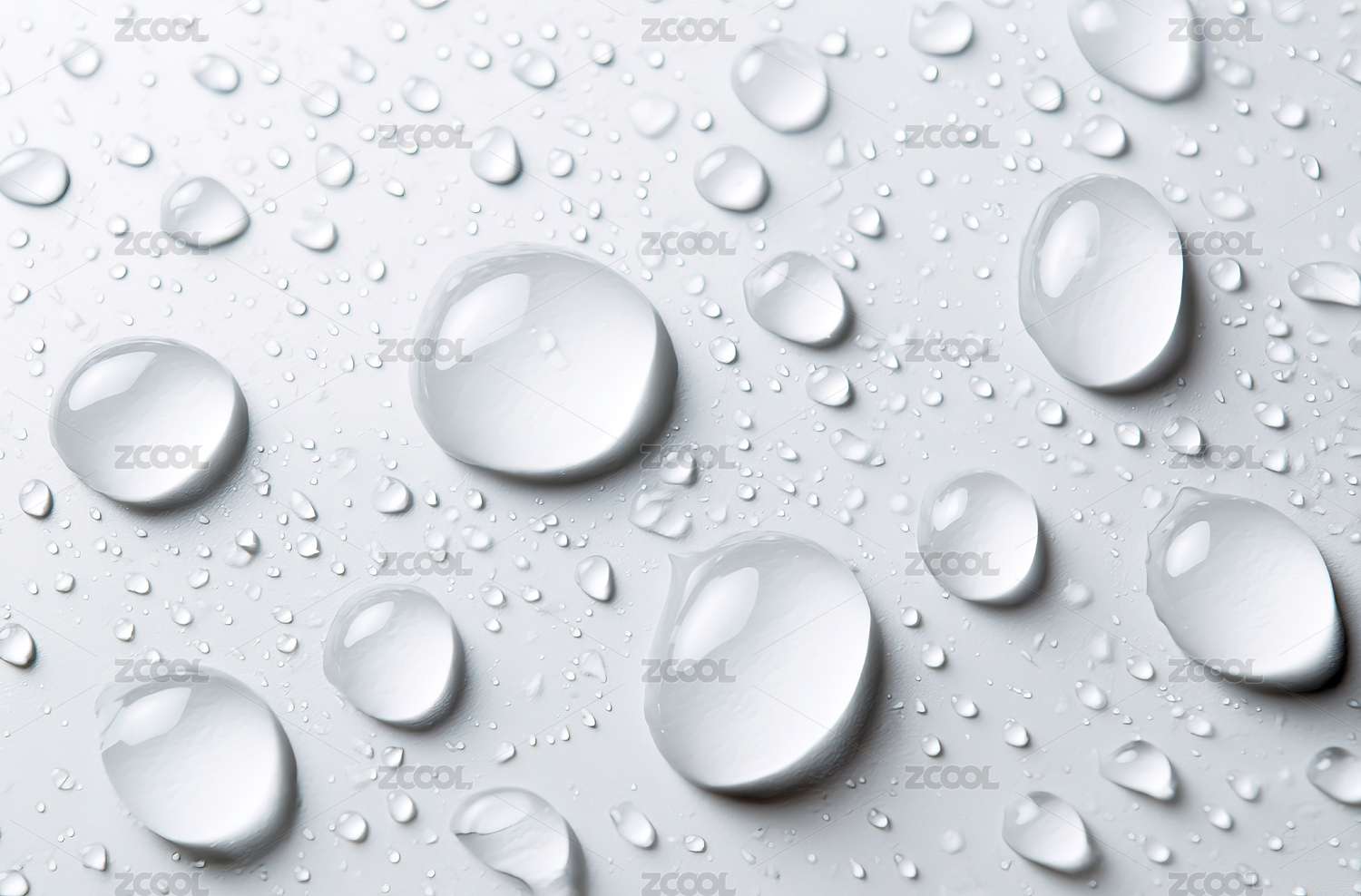 白色背景上的雨滴全帧拍摄