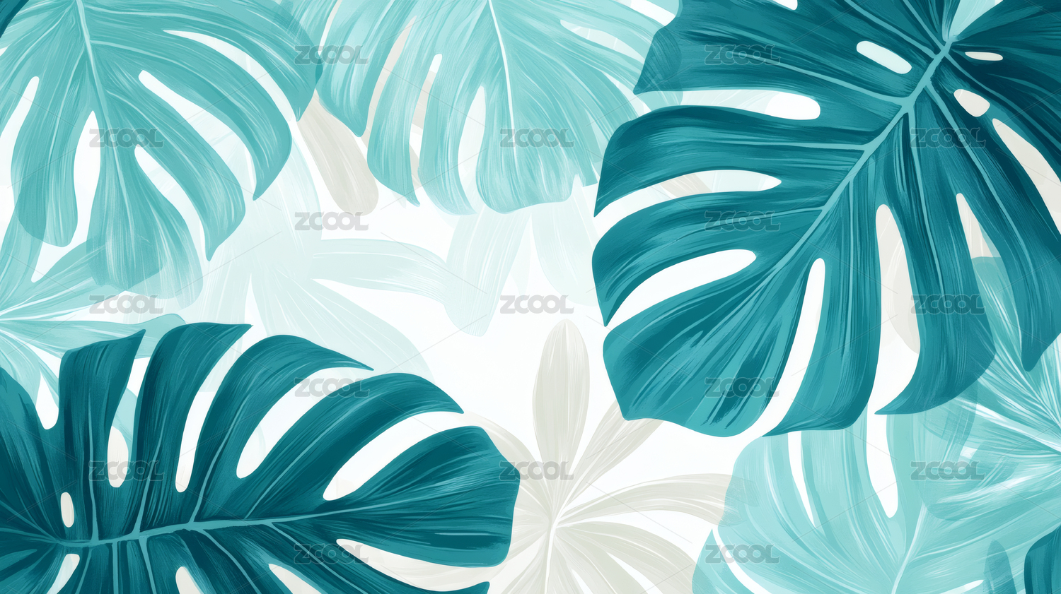 植物龟背竹叶子梦幻背景壁纸