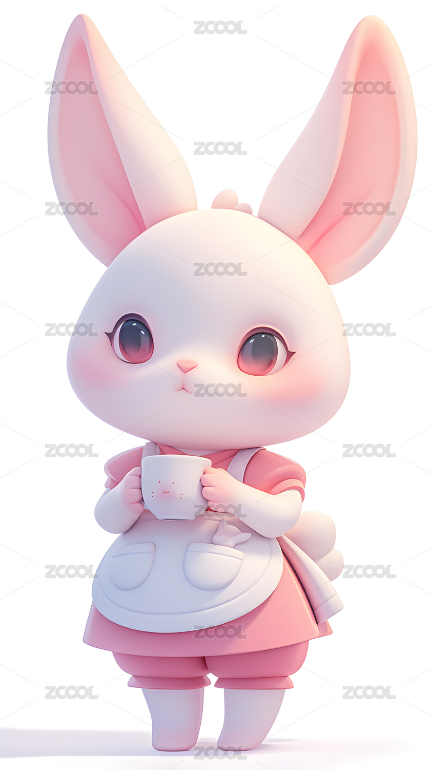 粉色兔子可爱唯美野生动物3D卡通插画壁纸