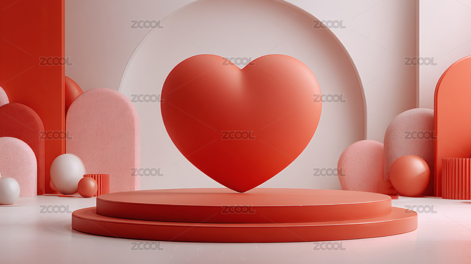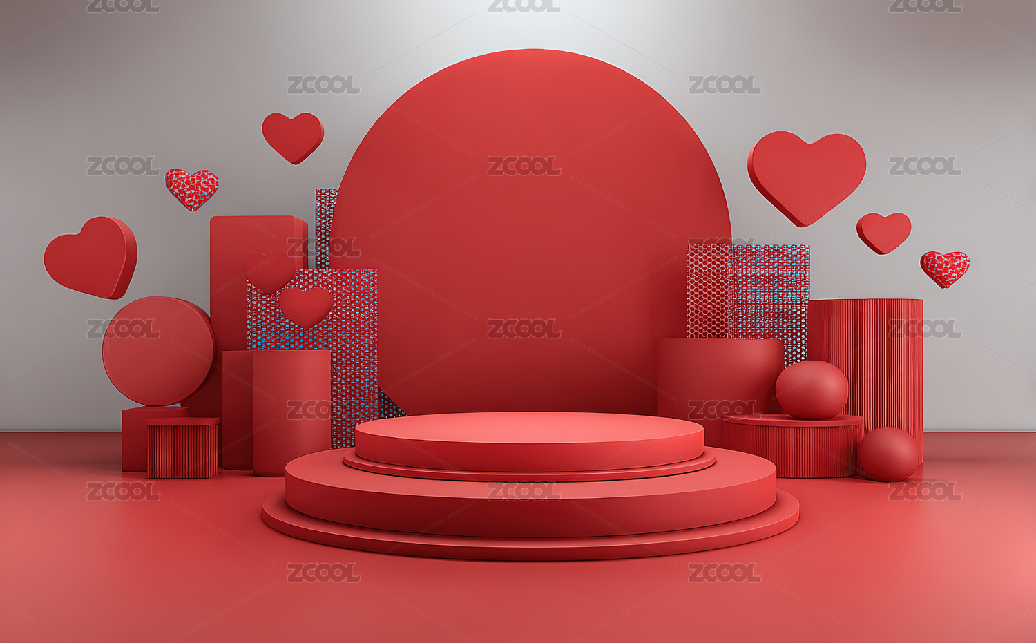 红色心形几何舞台场景