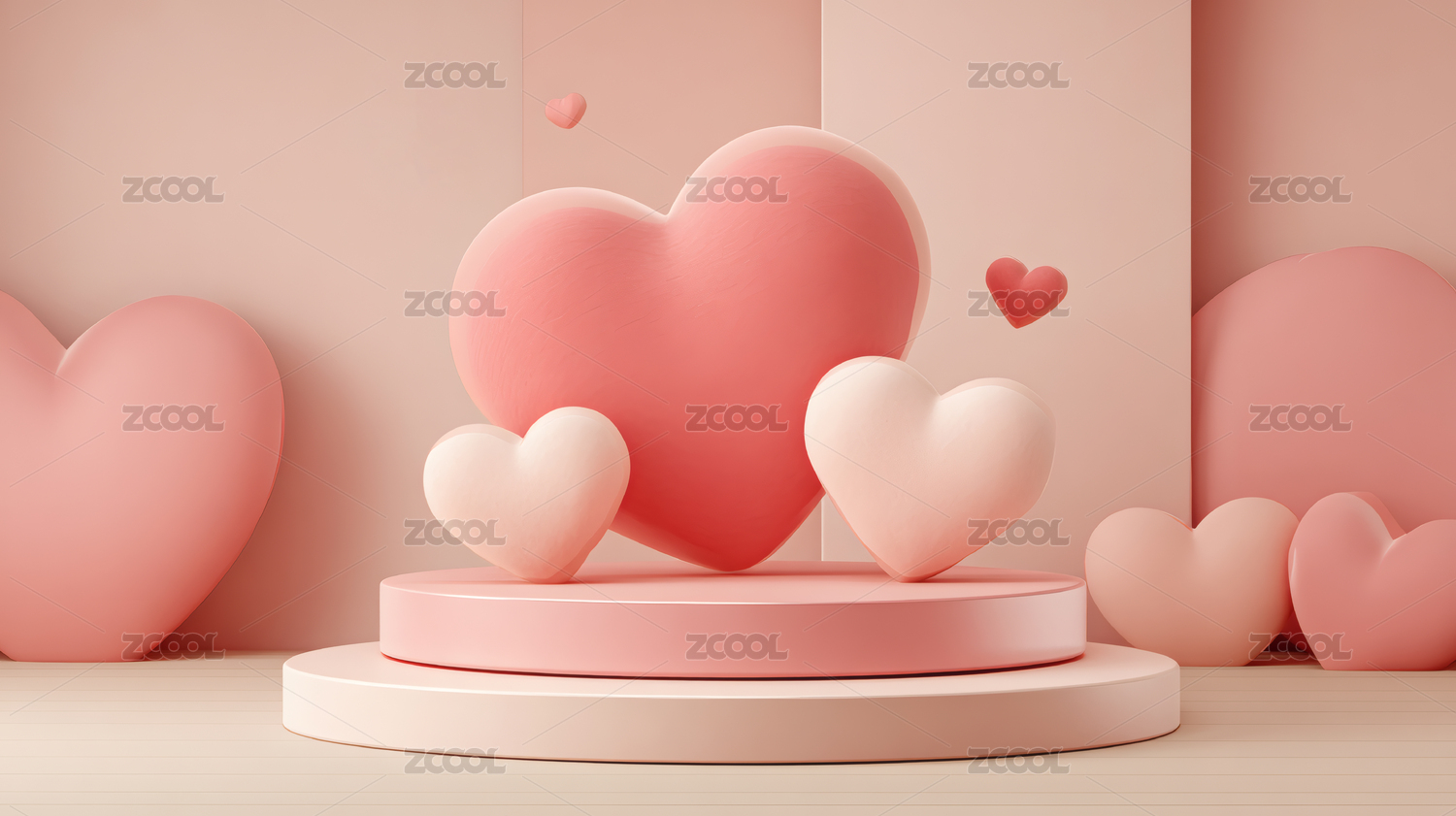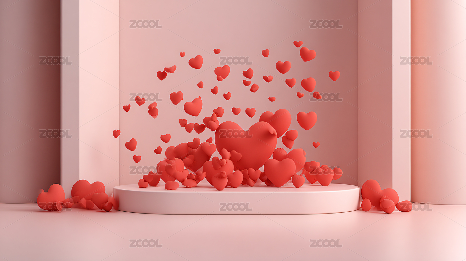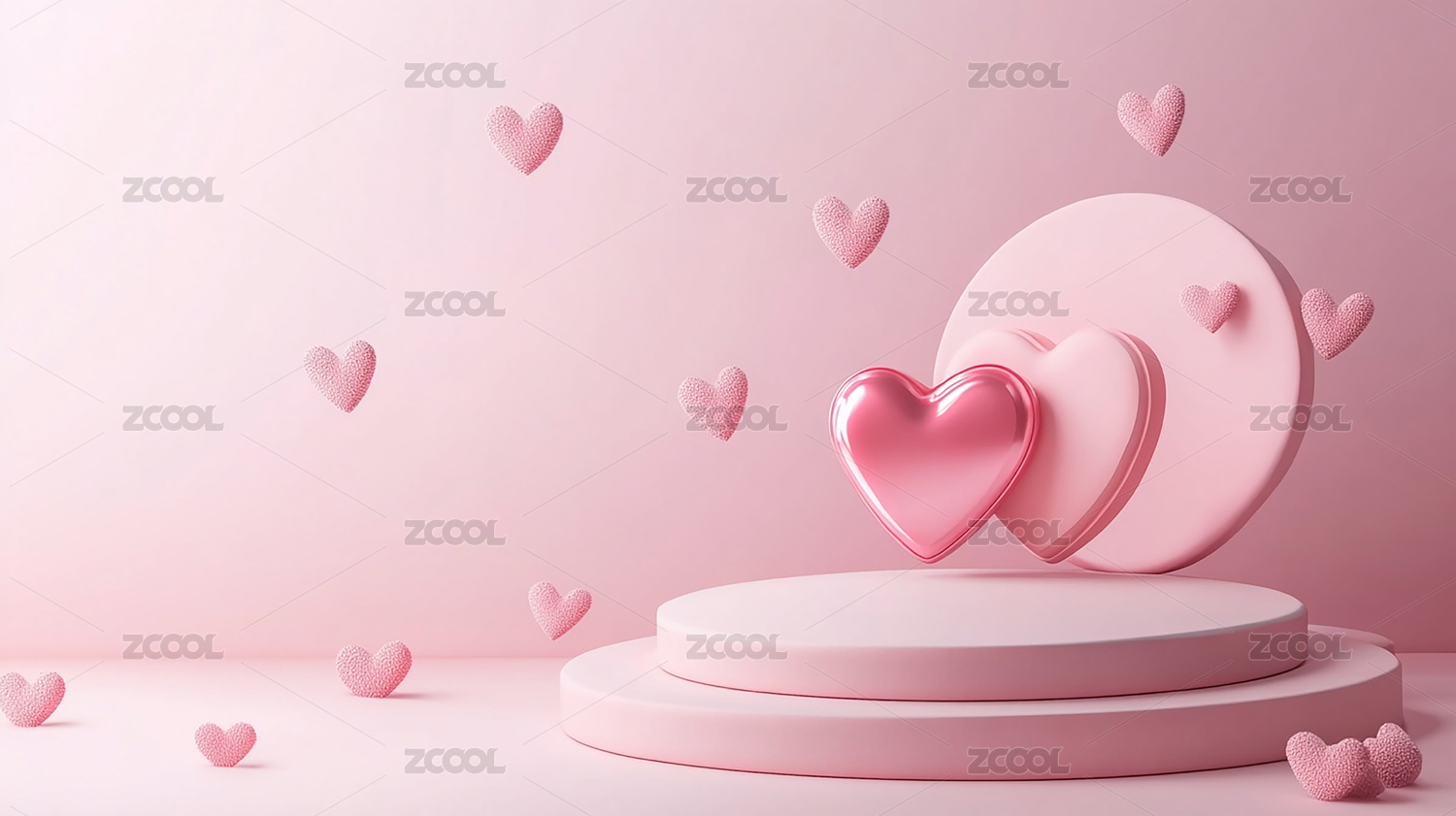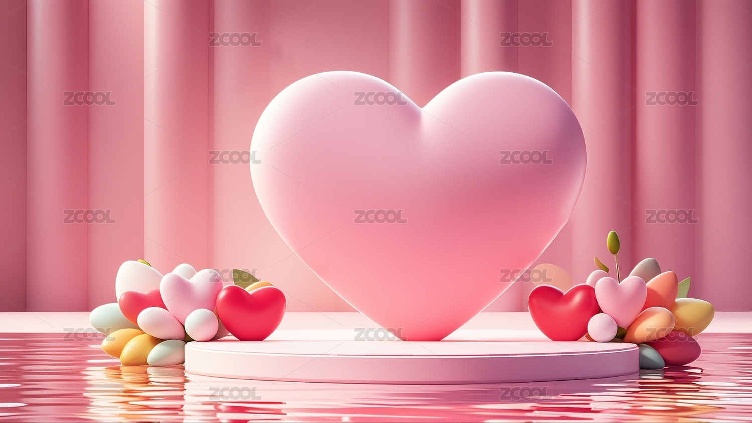 粉色心形展台弥漫浪漫爱意
