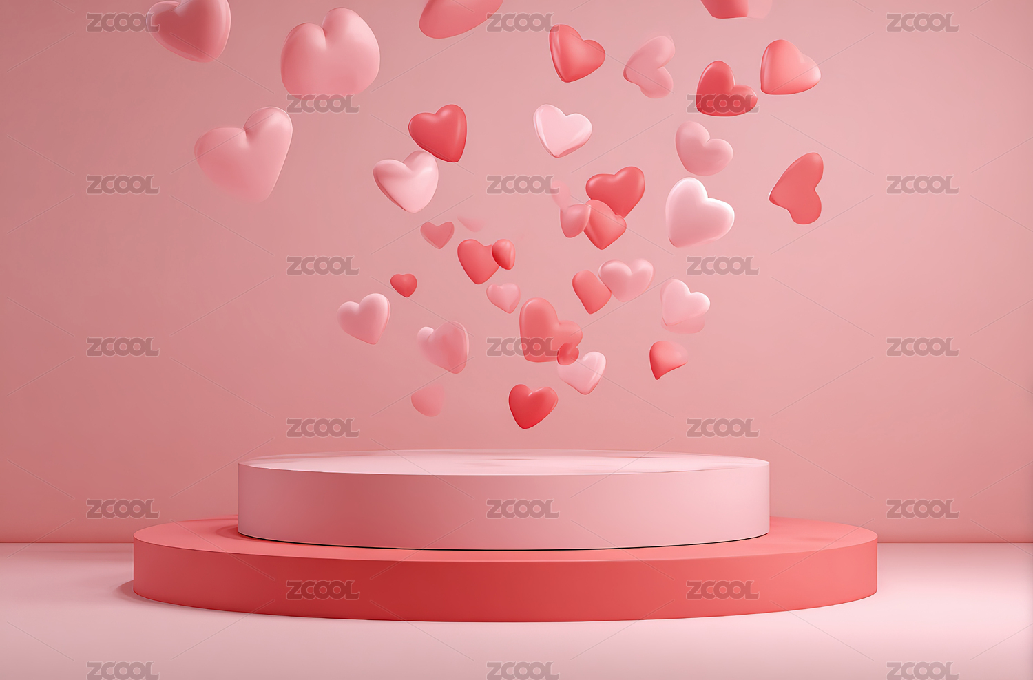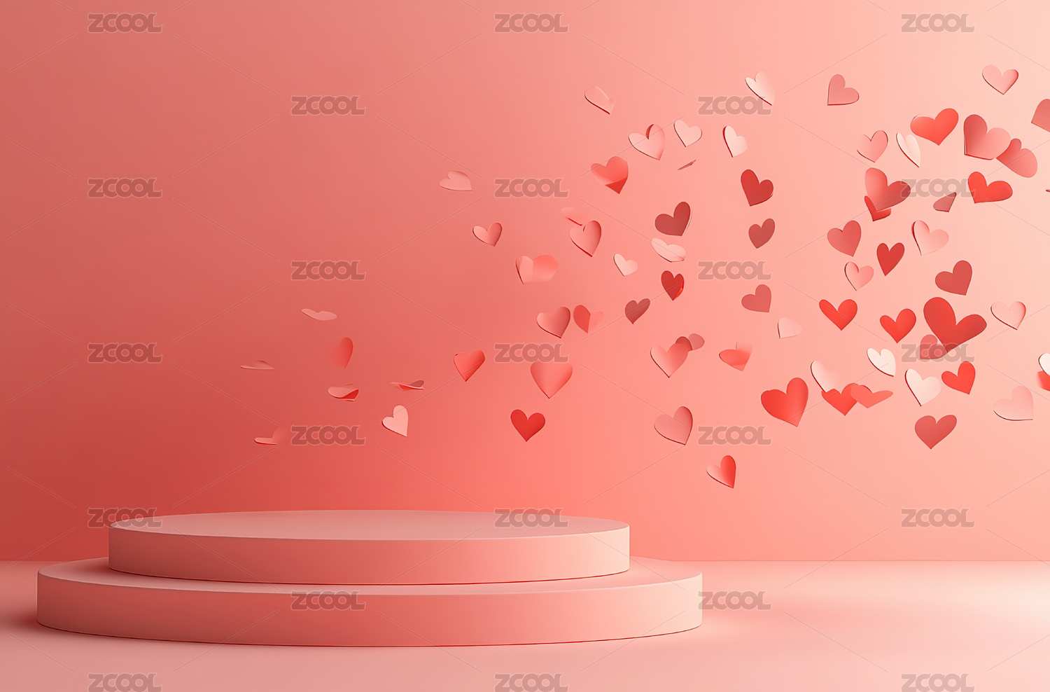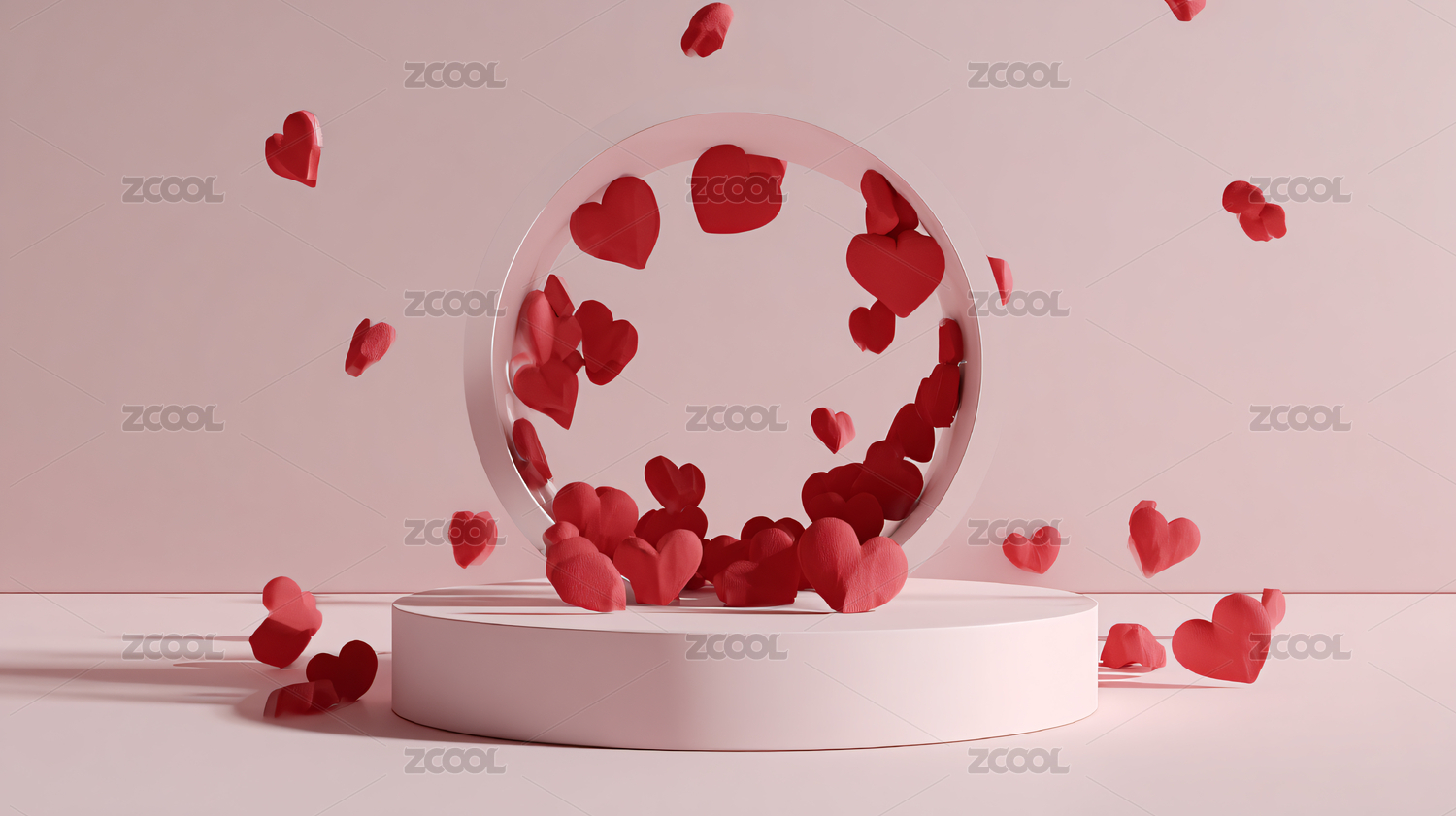 粉色心形飘落的展示台