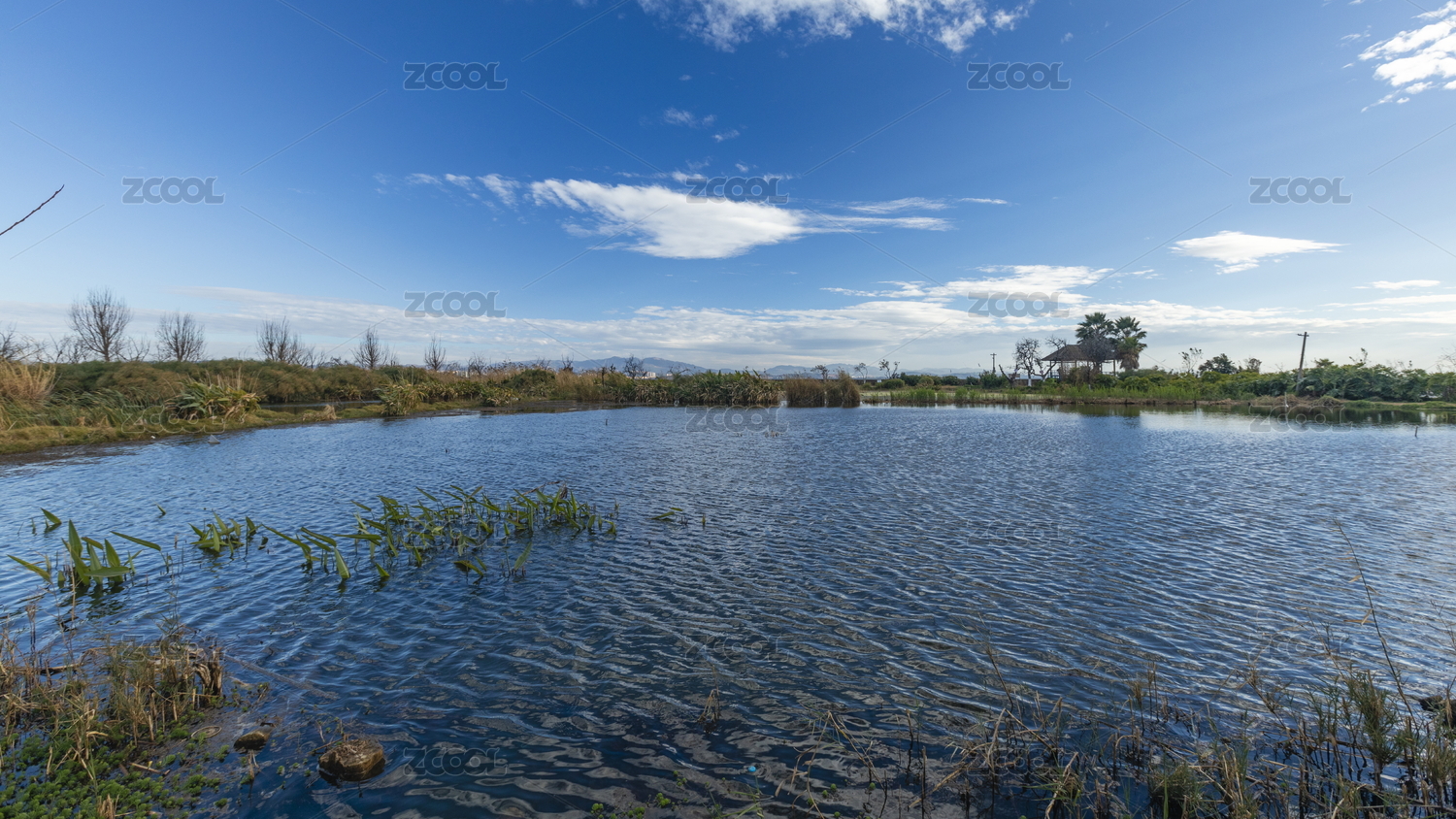 蓝天白云下江苏盐城大洋湾旅游风景区景观