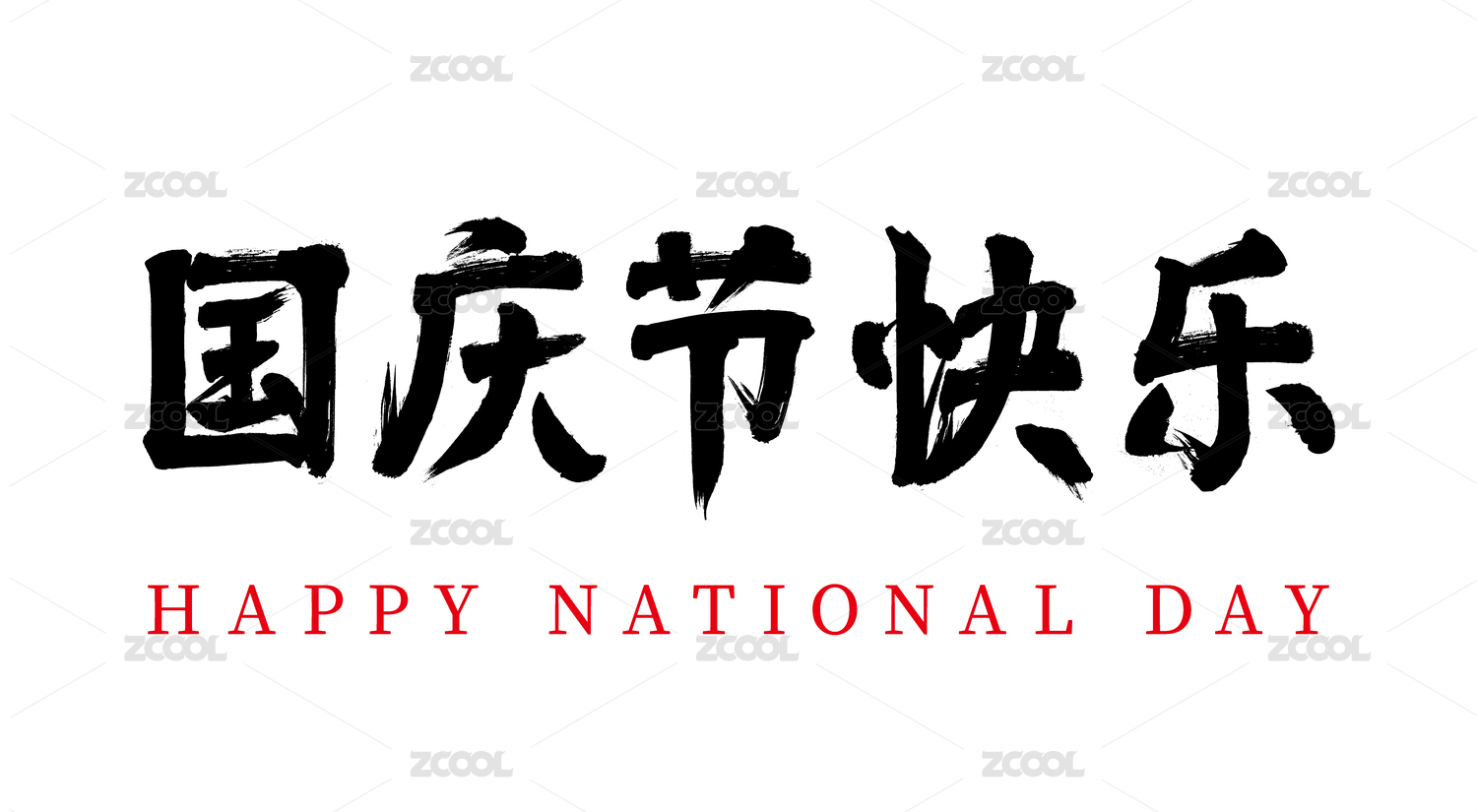 中国传统节日国庆节快乐矢量中国毛笔书法字