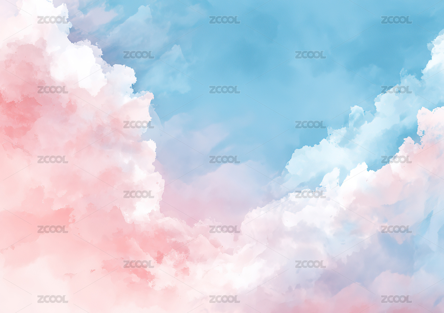 水彩风格抽象天空彩云PPT海报主视觉背景