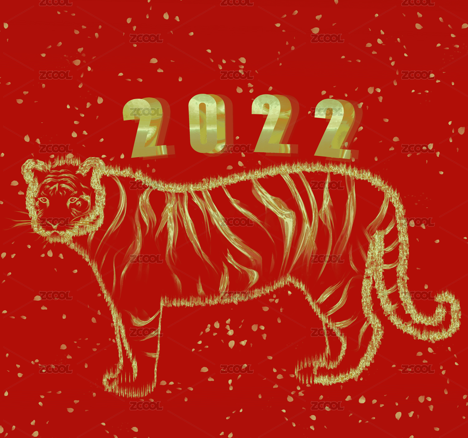 春节,过年,新年,喜庆,插画,中国,节日,虎年,老虎,HEVCSF2022