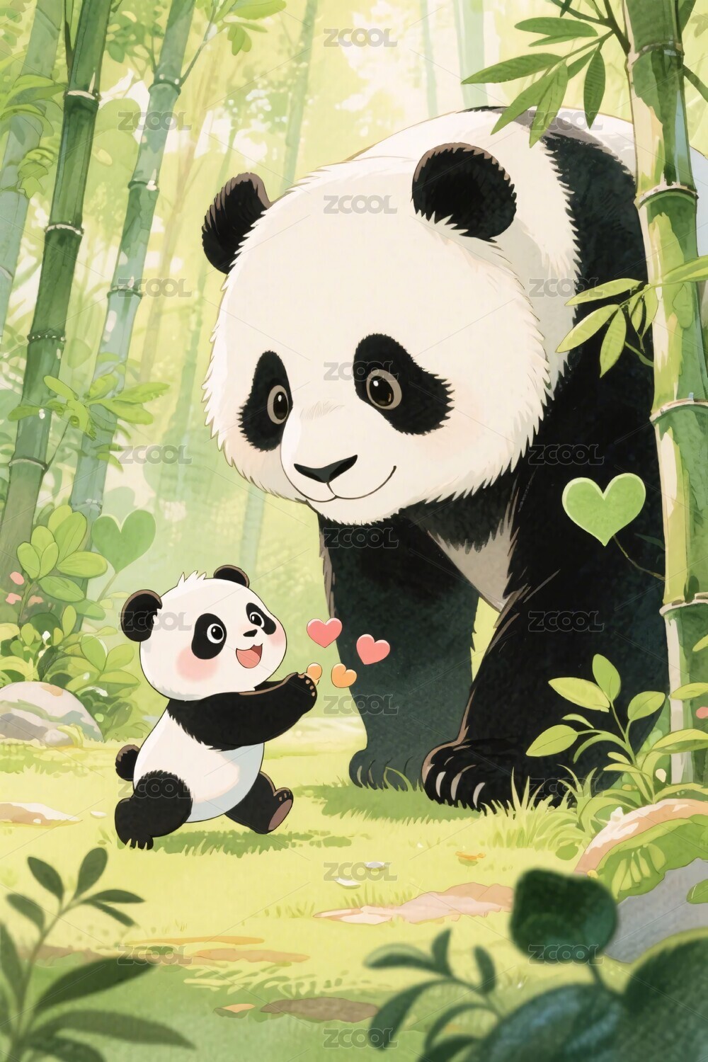 熊猫亲子插画