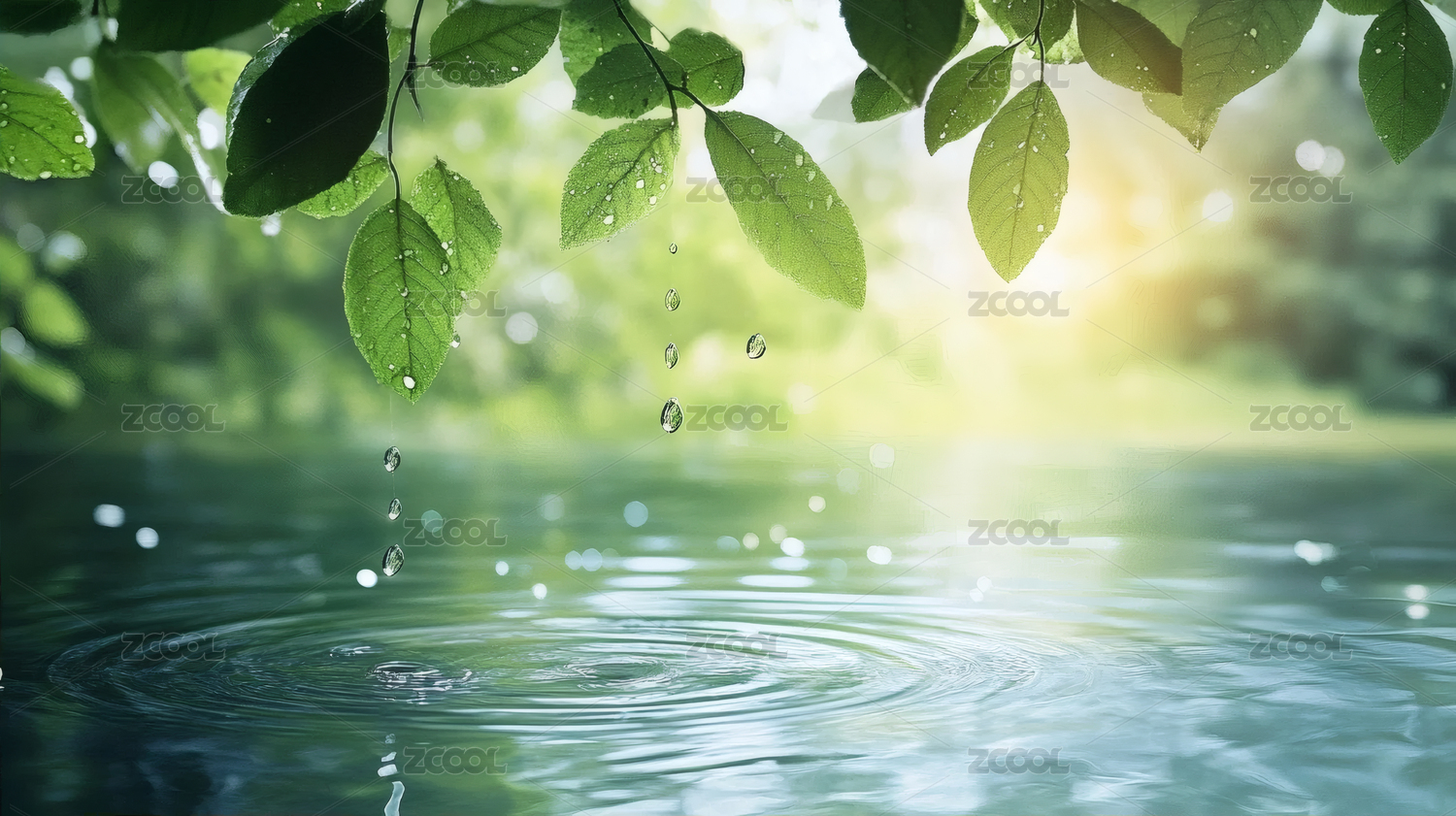 逆光,叶子,绿叶,绿色,水波纹,乳白色,水面,俯拍,背景,留白