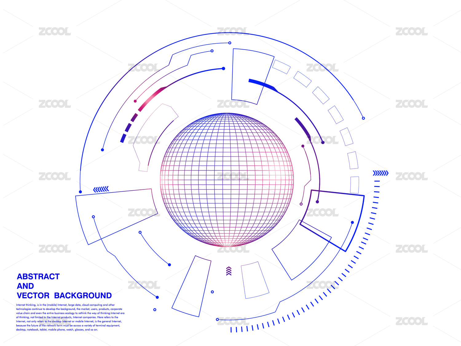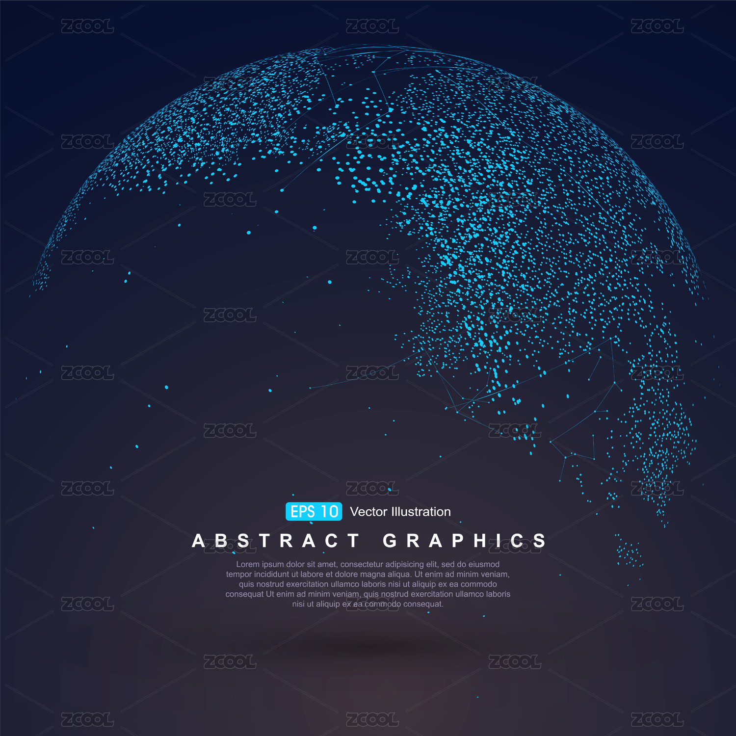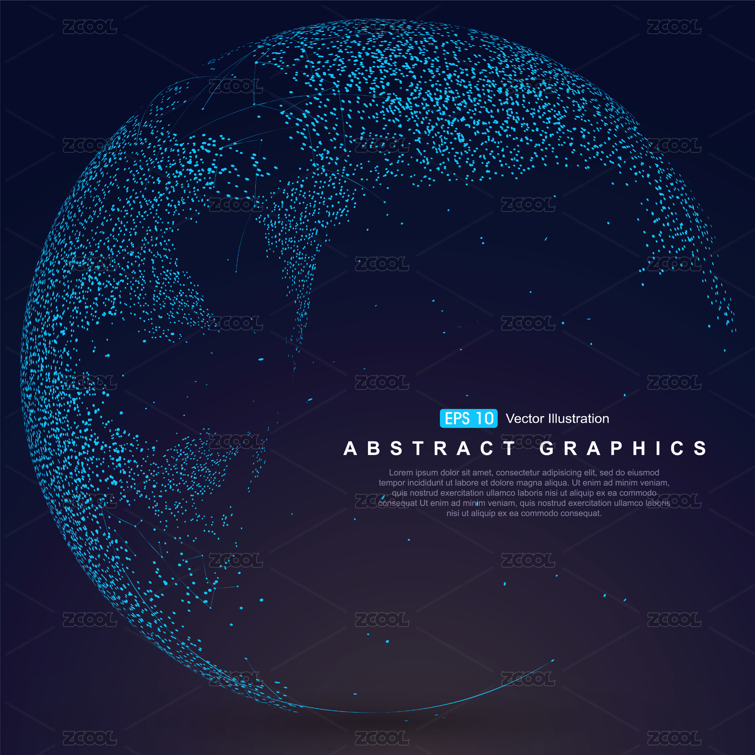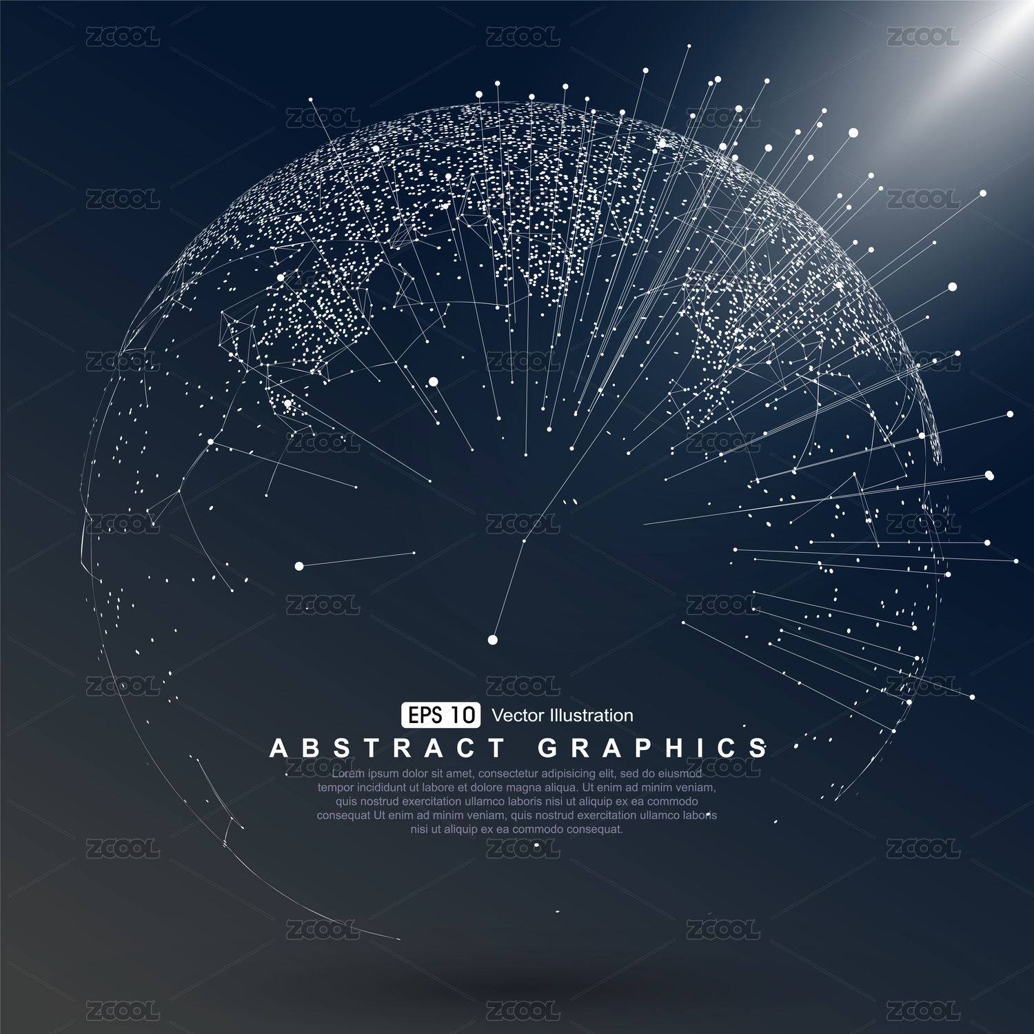 点和线组成的三维球形世界地图,科学技术矢量背景图